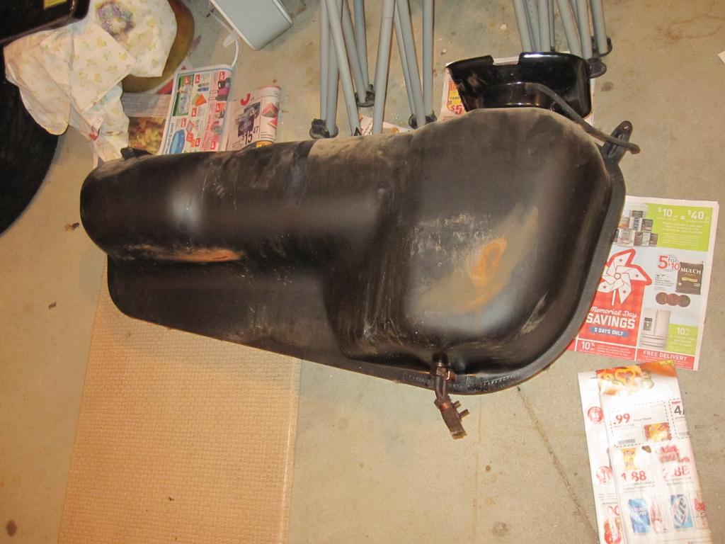 The goal of the project is to make it safe and get it running while keeping it as original as possible for as little money as possible. Last night my husband and I pulled the gas tank preparatory to replacing the fuel lines. The car was put into storage out of gas, fortunately. The tank looks good from the outside. Should we get it boiled out and sealed, or is this an unneccessary expense? If we don't do that, I will probably use POR15's cleaner and degreaser with a quart of hot water to clean it. Photos: (IMG:http://www.914world.com/bbs2/uploads_offsite/i603.photobucket.com-17396-1401031248.1.jpg) (IMG:http://www.914world.com/bbs2/uploads_offsite/i603.photobucket.com-17396-1401031249.2.jpg) Tank: (IMG:http://www.914world.com/bbs2/uploads_offsite/i603.photobucket.com-17396-1401031249.3.jpg) (IMG:http://www.914world.com/bbs2/uploads_offsite/i603.photobucket.com-17396-1401031249.4.jpg) I'm sure I'll have other questions as the resurrection continues. Thanks! (IMG:style_emoticons/default/bye1.gif) |
