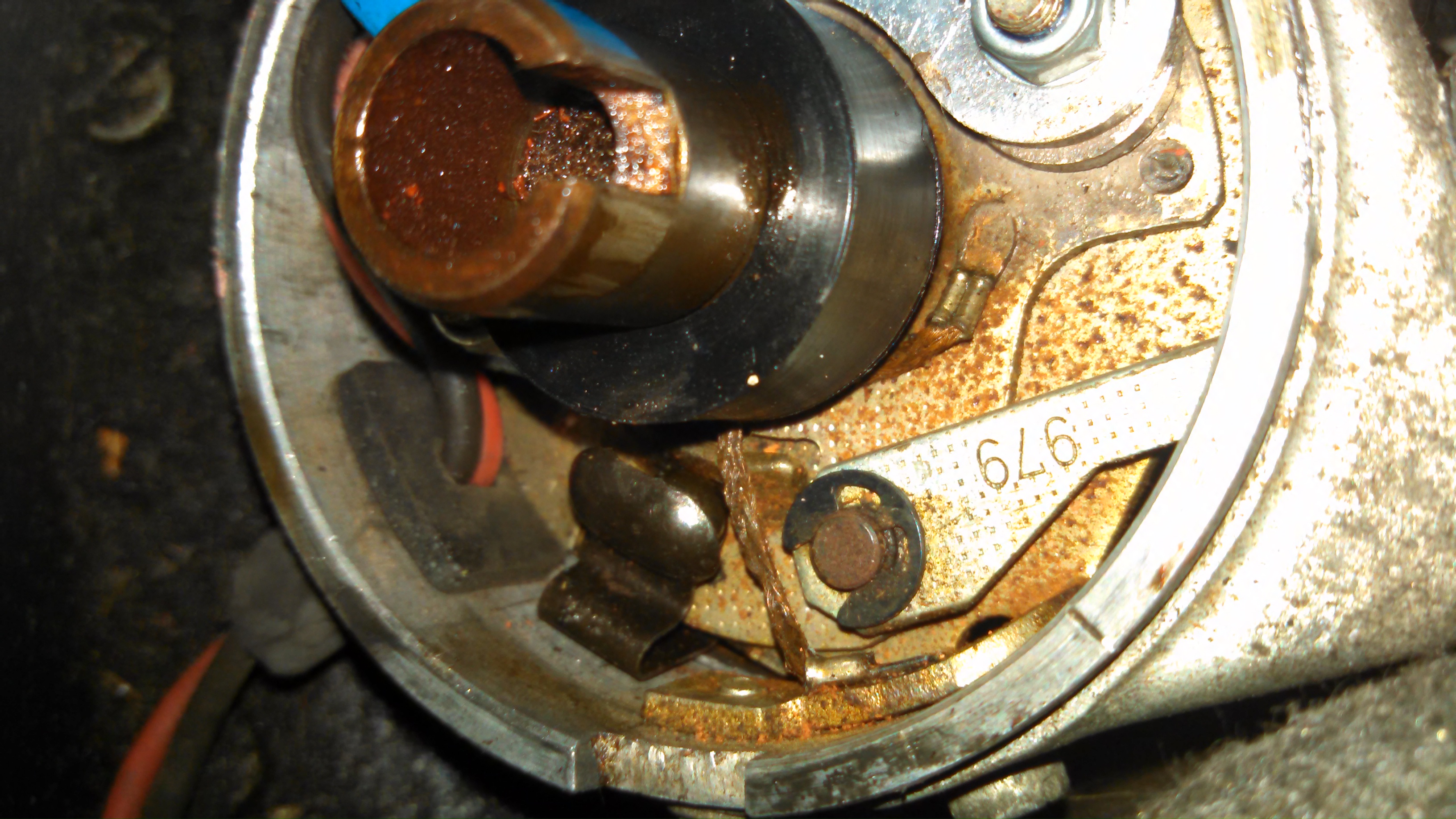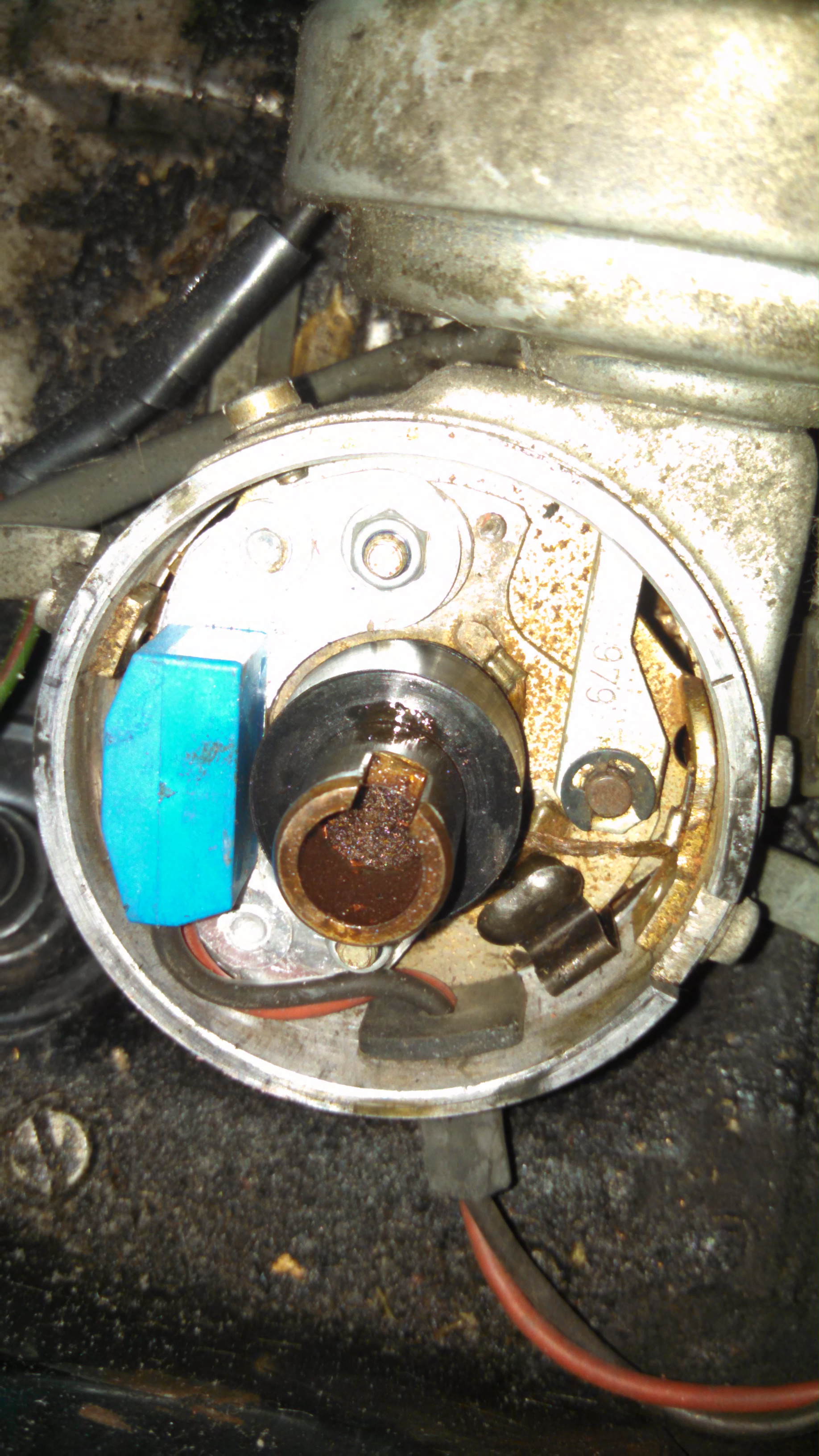 Ground in dizzy appears ok.....pretty dirty in the dizzy though. It could definitely be a fried Pertronix module or perhaps one of the wires from the module to the coil has come loose in it's connector? I've got Pertronix and I've had that happen due to a poor crimp on the connector (my fault). I've not had a module fry out suddenly but I know that it could happen. My goal is to have a spare dizzy in my emergency kit setup and ready in case something happens like that. And I'd look at the rotor and cap as well.... Since I don't have a set of points and condensor, I guess I'm going to just order another Pertronix and test it out. Worst case I have a spare/backup Pertronix if that doesn't fix it. Cap and rotor are around 6 months old (same as coil). After that, I don't know what it could be? Ignition switch going bad? I |