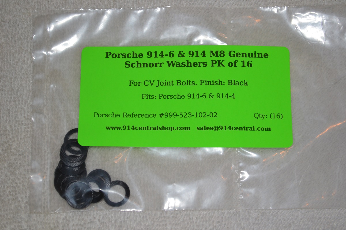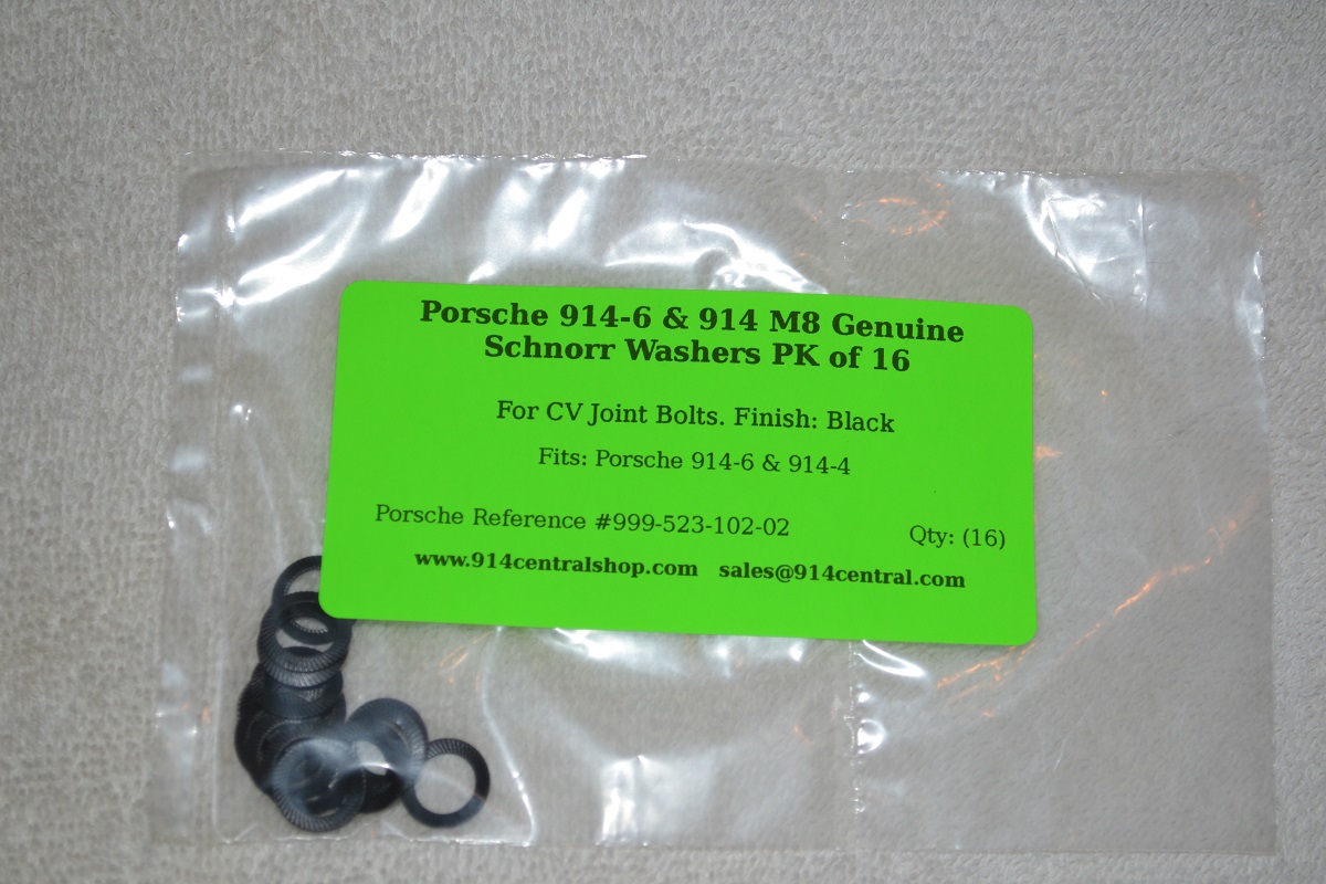 As seen at Okteenerfest 2013. As seen in the 2013 GB Genuine Schnorr Washers - i.e. Porsche OEM/OE. I buy these Schnorr Washers direct from the Schnorr Company. Porsche reference #999-523-102-02. These washers can only be used 1 time and then thrown away. Or installed & torqued once. Sold as a pack of (16) washers. Sealed & labeled. They are black. Price: $5.00/pk Shipping: $2.50 1st Class USA I take PayPal, Credit/Debit, and Cash. Post or drop me a PM if you want some. |