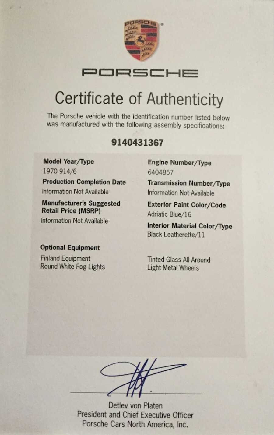 I would think if it was a factory M471 optioned car the COA would have listed it? (IMG:style_emoticons/default/idea.gif) Nice color ! Hope he gets his asking price... Vin is not in the data base that I see? https://www.flickr.com/photos/126218907@N06...57649298414942/ http://forums.pelicanparts.com/porsche-car...0-914-6-gt.html Hi Pete, if you want to learn more about the car, you find a more detailed discussion right here: http://www.914world.com/bbs2/index.php?showtopic=236540 I would agree to Gustl. Also from my side of view it's not a factory M 471. BR Kaeferfreund |