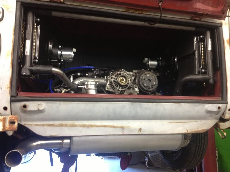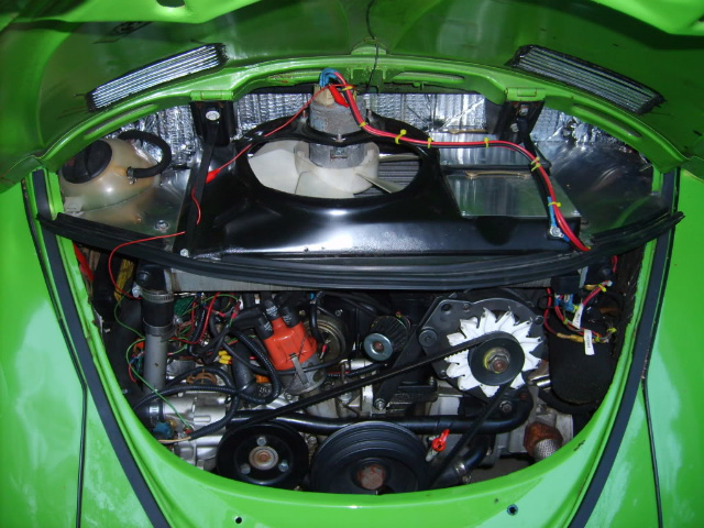 (IMG:http://www.914world.com/bbs2/uploads_offsite/i379.photobucket.com-2618-1418073678.1.jpg) On the more practical side VW bus guys have been out there actively trying lots of different ways to adapt modern engines to their old air-cooled busses. One that was interesting to our discussion was split dual radiators in the engine compartment fed with large scoops on the sides of a bay window bus, augmented by large fans. This worked reasonably well but still tended to heat saturate after extended time on the freeway. (IMG:http://www.914world.com/bbs2/uploads_offsite/i53.photobucket.com-2618-1418073678.2.jpg) Another bus had huge fans pulling air into split window's engine bay, proved not nearly enough. Yet another had scoops across the underside of a kombi gave good airflow and worked for a while, but scooped up a lot of dirt and crap that eventually clogged things. Another was roof-mounted like a luggage rack, which sounds a bit like the targa suggestion. (IMG:http://www.914world.com/bbs2/uploads_offsite/i53.photobucket.com-2618-1418073678.3.jpg) The owner intends to camouflage that so it looks like a suitcase or a beer cooler, interesting idea but probably not the best look for a 914. This one actually works really well, it's in direct air flow, but not exactly in the engine compartment. Obviously these aren't 914's, but it's significant that most of those applications are low to medium powered Subaru engines that are relatively efficient and don't need a huge amount of cooling. A higher powered engine would certainly be more difficult. Basically what's relevant is that the practical experiments indicate that it's really difficult to cool without having access to direct air flow. That means I wouldn't be optimistic about it working in a 914's engine compartment either, but hey, if you think you have a good idea, go for it. |