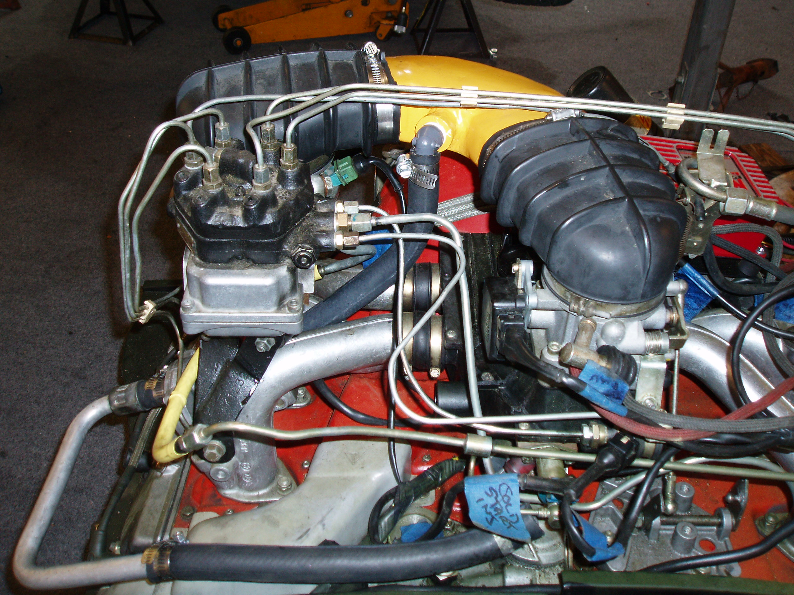 When I ran the 3.0 SC engine in my conversion it utilized the original cis airbox, with a safety blow off kit. I took the black rubber boot off of the top, carefully trimmed some material off of the top (16" surface grinder), and it just cleared the engine grille. This is all dependent on which style motor mount is being used...some higher/some lower. Marty |
