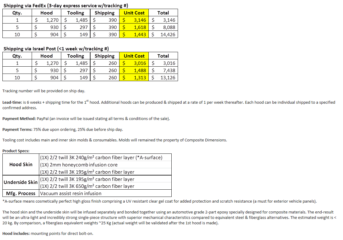 I will inquire on pricing including shipping to us on 5 hoods. Front or rear or both?