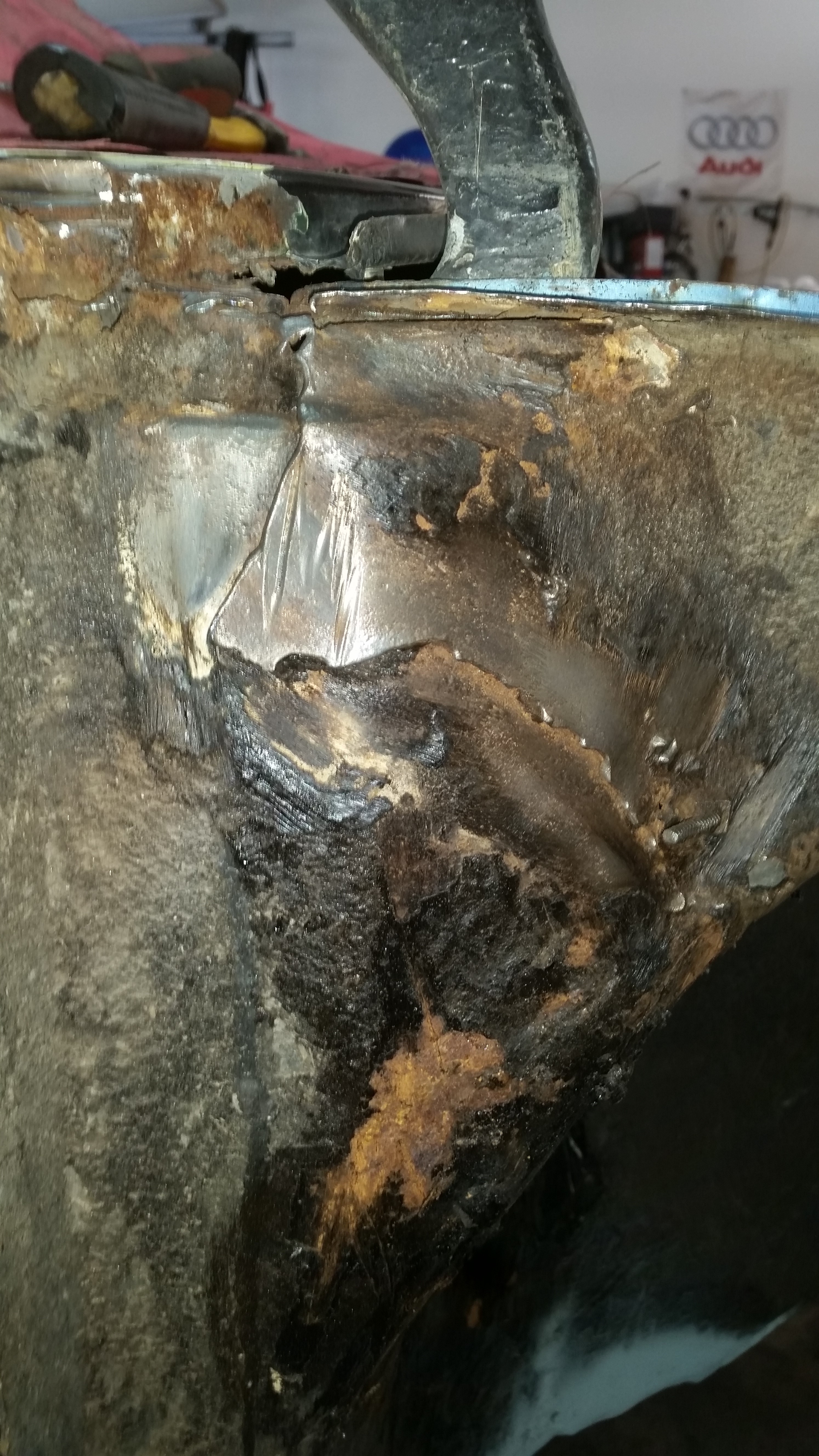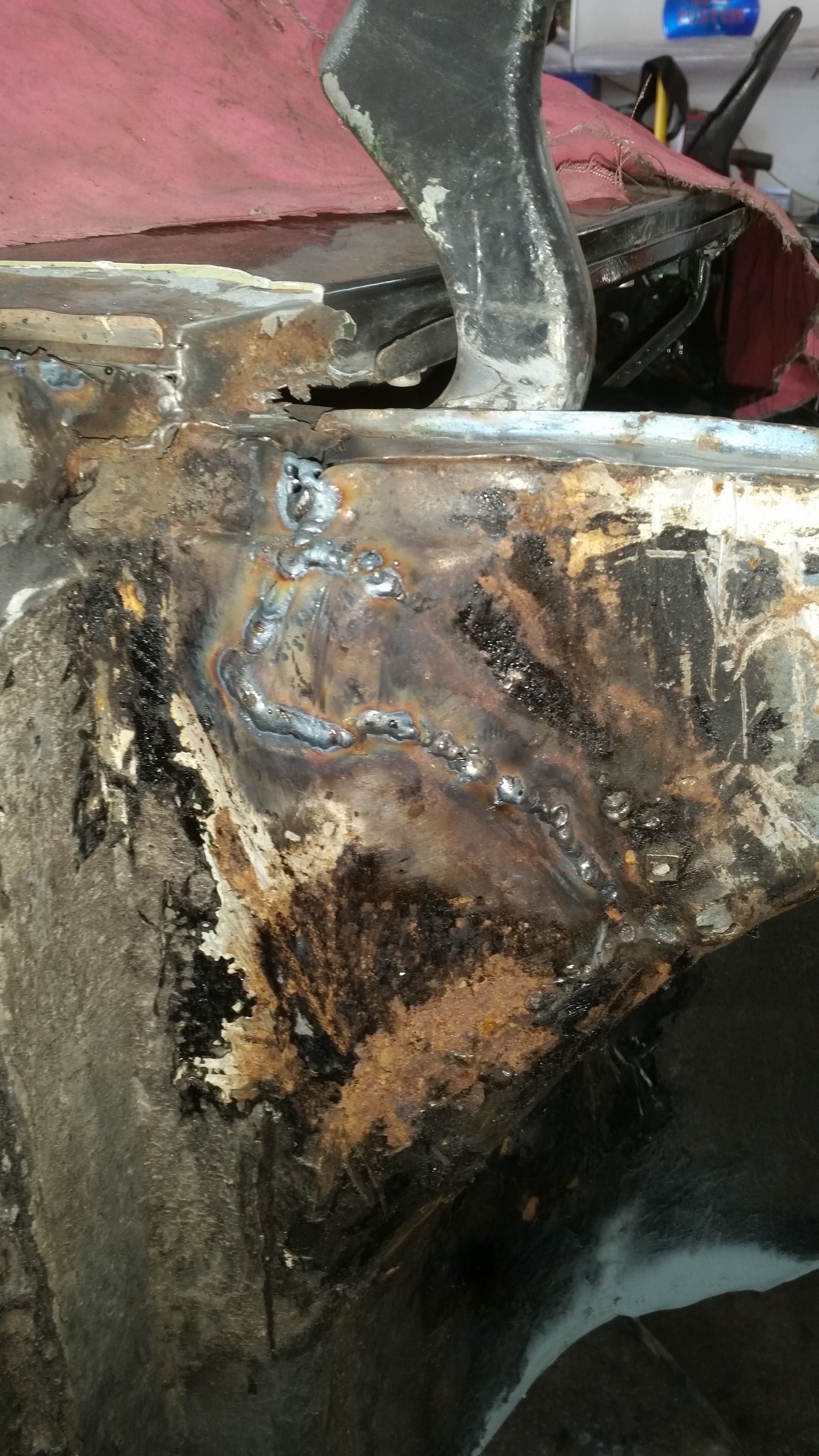 Here's the drivers side...some of the spot welds were still intact...hooray