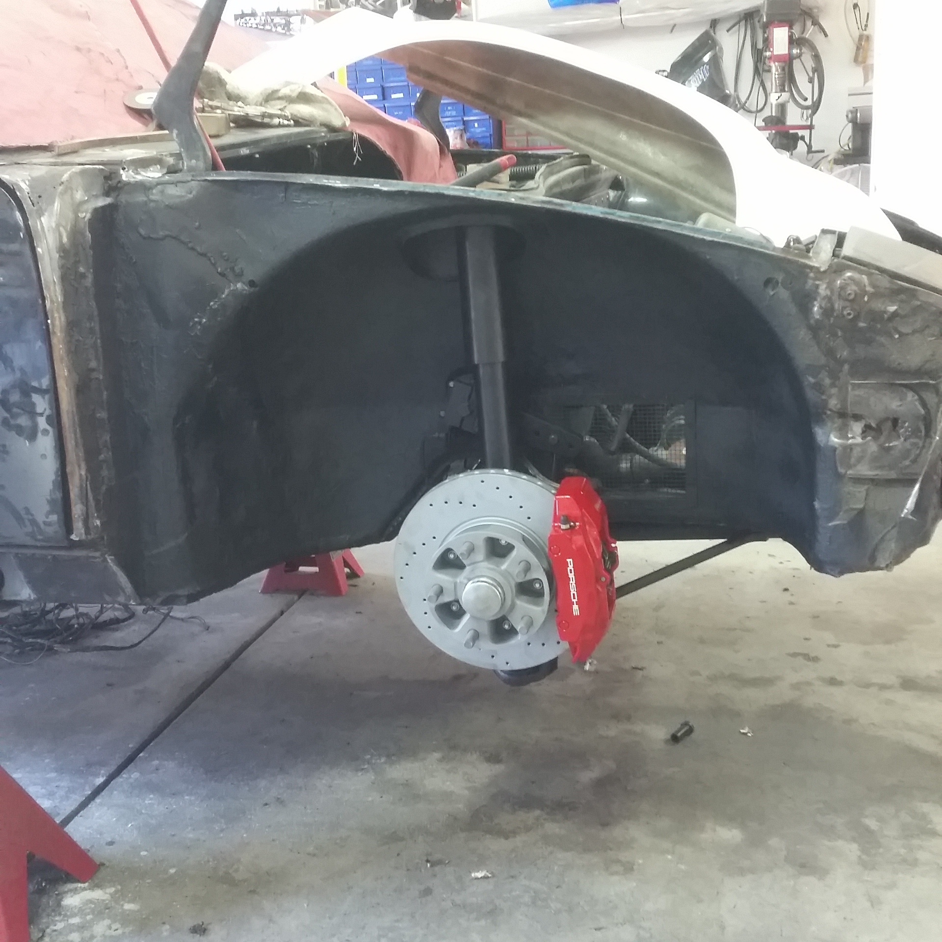 I decided to take another welding brake Saturday afternoon and got the front Koni struts, turbo tie-rods and brakes installed up front. Looking at that stuff almost makes all the BS worth it...Almost...