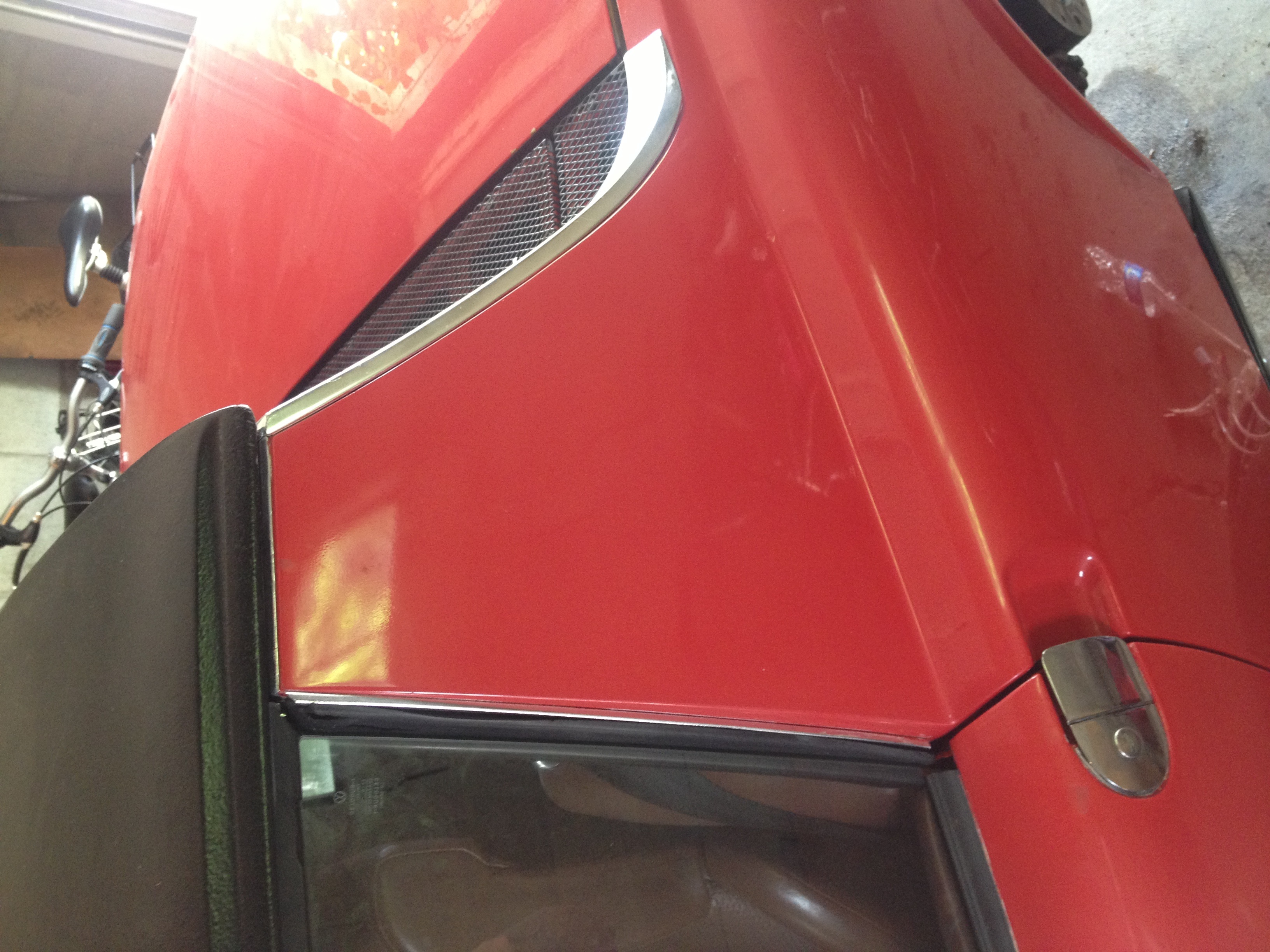 I think the cars look better without the sail panel vinyl. Thanks for all of the pics. I like this pic with the extra metal ridges removed. Of course, the next owner of this car one day will call me a DAPO if I do this!! I think I am likely to go with chrome trim with body color painted sails or have someone construct me a stainless steel (brushed aluminum?) "cap" to fit the entire targa bar area ala a 911 targa. |
