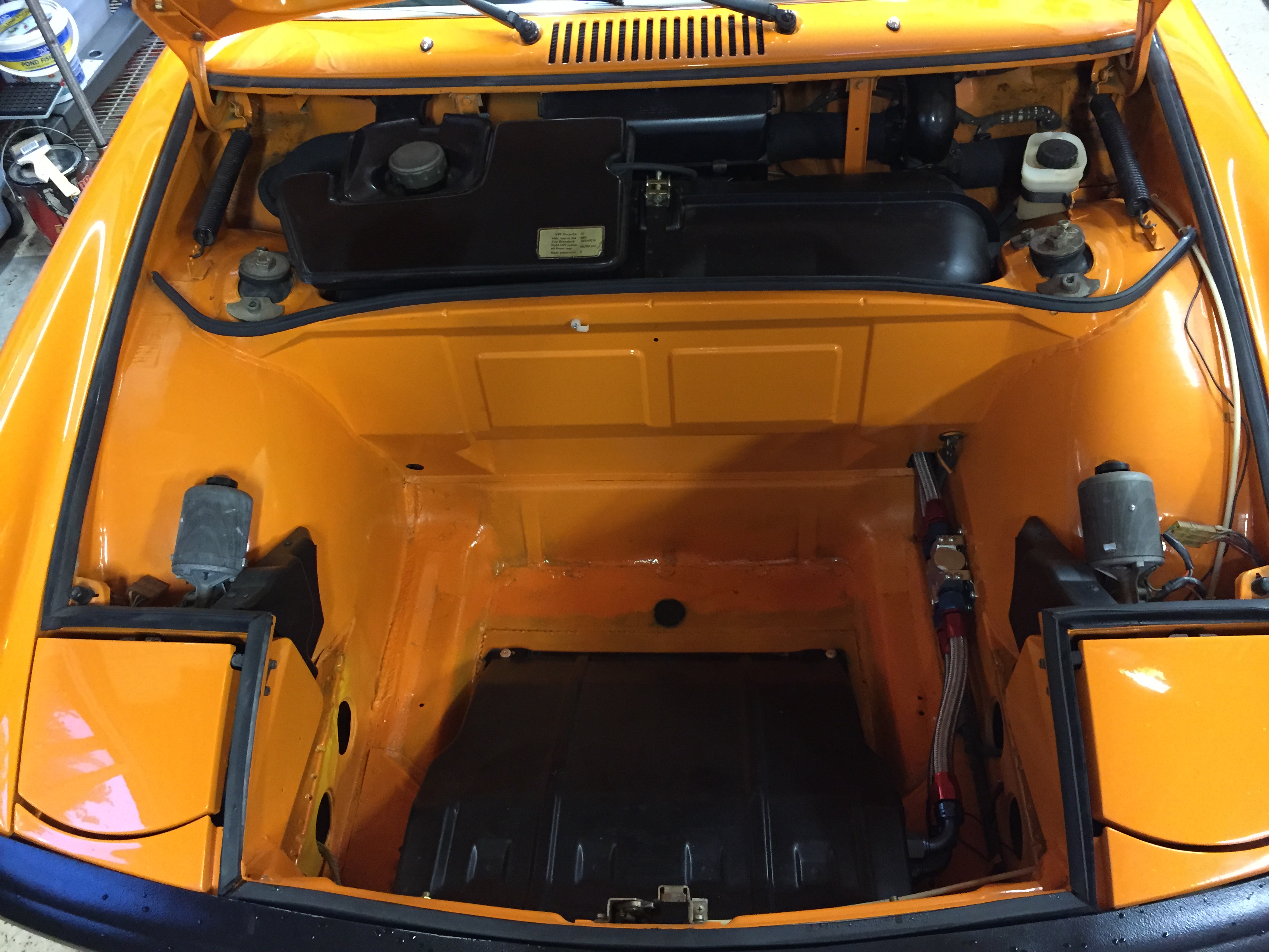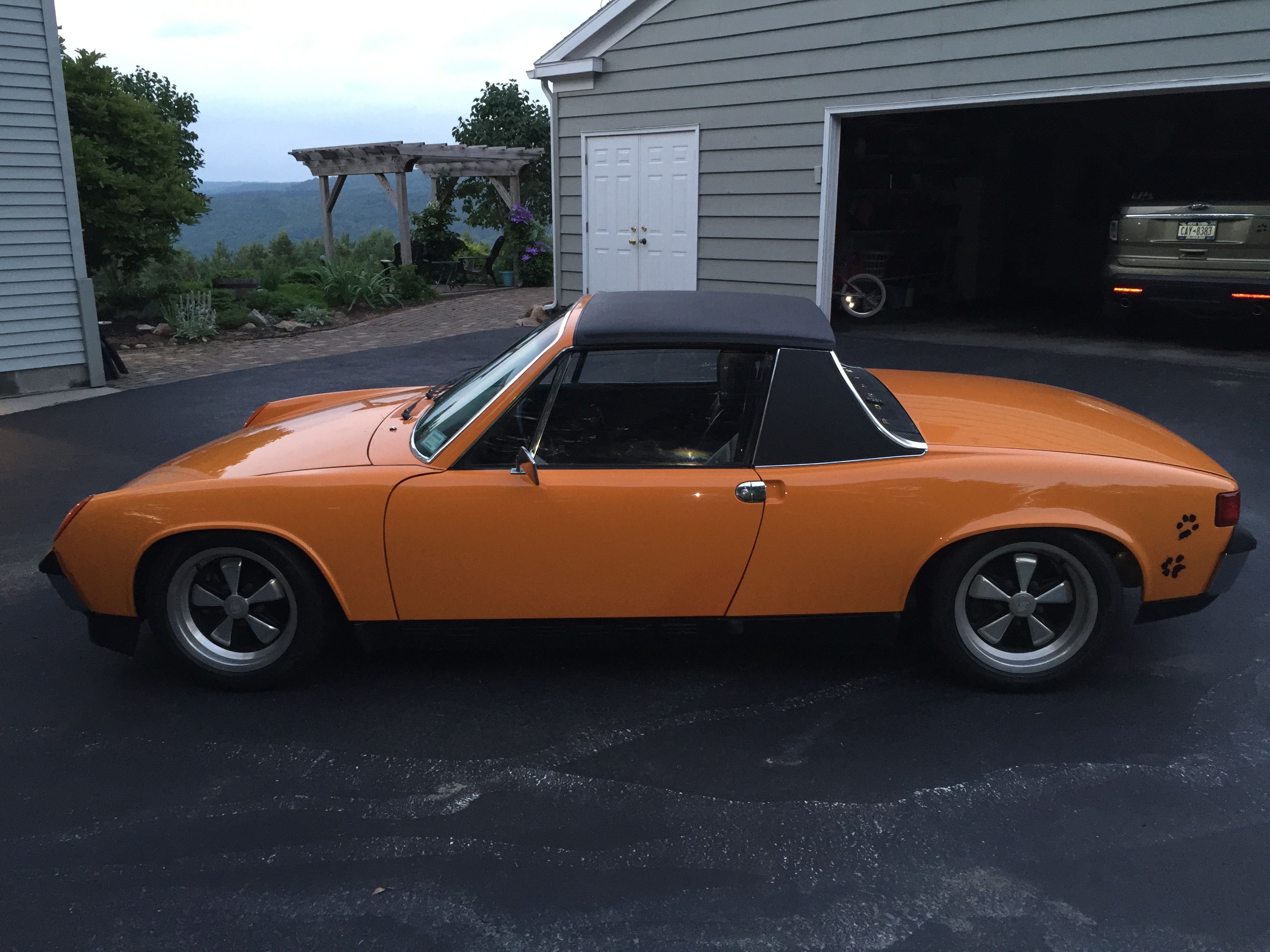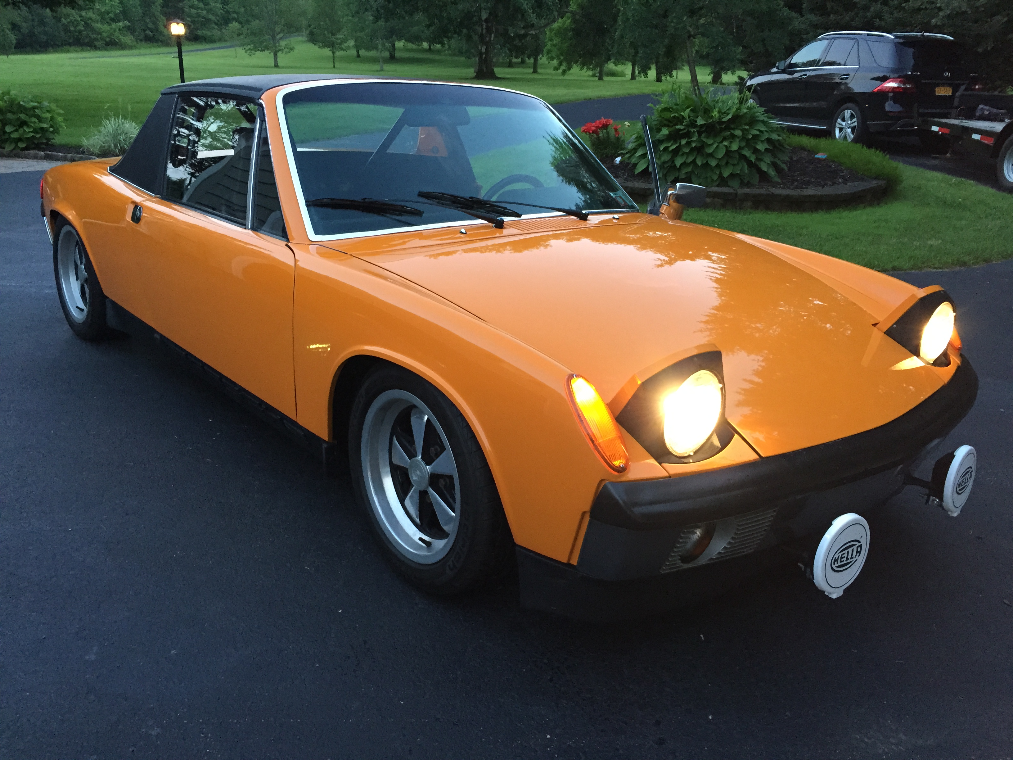 NEW PRICE: $34,000 OBO [i] Please email questions, offers, etc. to jvirnoche AT hotmail.com I don't check my PM's often MISC: 73 car that was converted to a 914-6 Signal Orange, paint is excellent. 2 small chips: one by the passenger headlight and one behind the drivers door. Less than ¼” and have been touched up. Stock Seats. GTS Classic seat with headrest is not included Momo Prototipo stearing wheel New Carpet 914-6 gas/temp gauge. Stock 911 tach and speedo. 911 tach needs to be rebuilt. Current tach is an Autometer gauge. Speedo in NOS & needs to be calibrated for the gearing. Fog lights and additional Hella Fog lights Fiberglass front bumper. Rear bumper is stock with good chrome & rubber cap Safety Device bolt in roll cage, powder coated gloss blackRear seat pad deleted. Firewall is carpeted. Fiberglass rocker covers (stock metal included) ENGINE: 1986 3.2 motor, new gaskets, seals, etc. No leaks, runs perfectly. Includes new speed sensors, rebuilt DME unit, Steve Wong chip (stock chip included), new clutch, resurfaced flywheel Patrick motorsports wiring harness Patrick motorsports front mounted oil cooler, thermostat and stainless lines Patrick motorsports engine mount 914-6 factory oil tank M&K Muffler with removable Supertrapp baffles New high output starter New battery TRANSMISSION: Complete rebuild by Dr. Evil Quaif limited slip (A,F, O & flipped H gear) Rennshift shifter (side shift tranny) SUSPENSION: Turbo tie rods 5 lug conversion 914-6 rear spindles 914-6 rear calipers 911 front suspension 911 s alloy front calipers 19mm master cylinder Adjustable konis Weltmeister front sway bar Factory rear sway bar6 6 X 15 Repro Fuchs BFG G-force 205/50s This car was an AC car but the front panel in the trunk was replaced perfectly with a donor patch panel. Oil cooler inlet uses the stock AC inlets behind the air damn. The front side markers have been deleted along with the antennae. There is a slight, very slight, widening of the rear fenders. This car show zero rust, none. It looks like there was a battery try replacement but it was done very well. Shipping not included. ![]() ![]() |