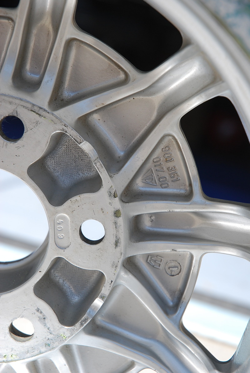 Yes, the original factory finish wheels had a blue tinged primer as part of the base coats. 2nd, as Mike accurately pointed out, is the perspective of a potential buyer on a reasonable price range "in today's sales climate" for rims in the unrestored condition as yours are. 3rd, Greg is correct. . Mahle gasburners in all likely hood will go on the top condition 914-6 and early 911 cars, which is a very limited audience of potential buyers. 4th. A damaged Magnesium rim has significantly less value and less realistically safe usability. Especially if the repair wasn't done by a person certified in Mag welding. It would make a good spare if the weld holds air. . Porosity is an issue as well as structural integrity. 5th. . Cost to refinish. . the professional refinishing places I checked estimated the cost around $300 a rim. . do it yourself and it takes days. . to strip all the nooks and crannies, prime with correct Mag chromate and paint, so that is another $1500 to $2000 investment needed to make these rims usable to the high quality car buyer. . These costs added to the initial investment is what will determine saleability. PS-Those supplies came to around $300 when I did mine.. Lastly, Magnesium wheels apparently have a safe usable life span depending on their previous use. Stress cracks seem to be common for older, heavily used rims. Despite what can be found on the web, powder painting Magnesium rims is a bad idea. Once that is done, they can't be refinished again in the future. Powder paint is removed by either chemical striping or burning, baking off at very high temps which is detrimental to magnesium. My powder painter company refuses to do Mag wheels due to liability issues. Probably more than just my 2 cents, but I feel is logical and realsitic thinking. |