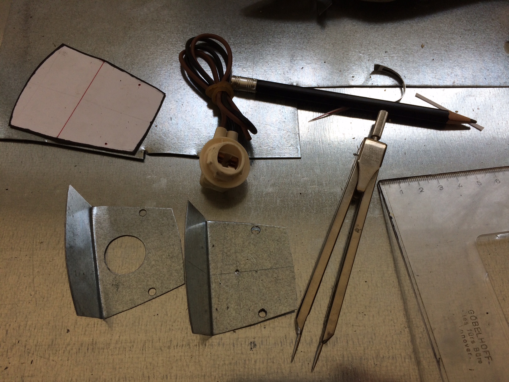 So after you all gave me such great advise, I just decided to make it myself... Here are some Pictures: I like your DIY ingenuity but what is that little metal thingy with the pointed ends? Have not seen them since the '70s... Maybe came in the tool kit? Is your bulb as bright as the Spoke LED solution? I need to do what you are doing. Thanks for the thread! It is a compass. I got it out of my dads architecture stuff, I'm sure he has it till the 70s... They are pretty bright right know, it is galvanised sheet matel so it reflects the light pretty good. |