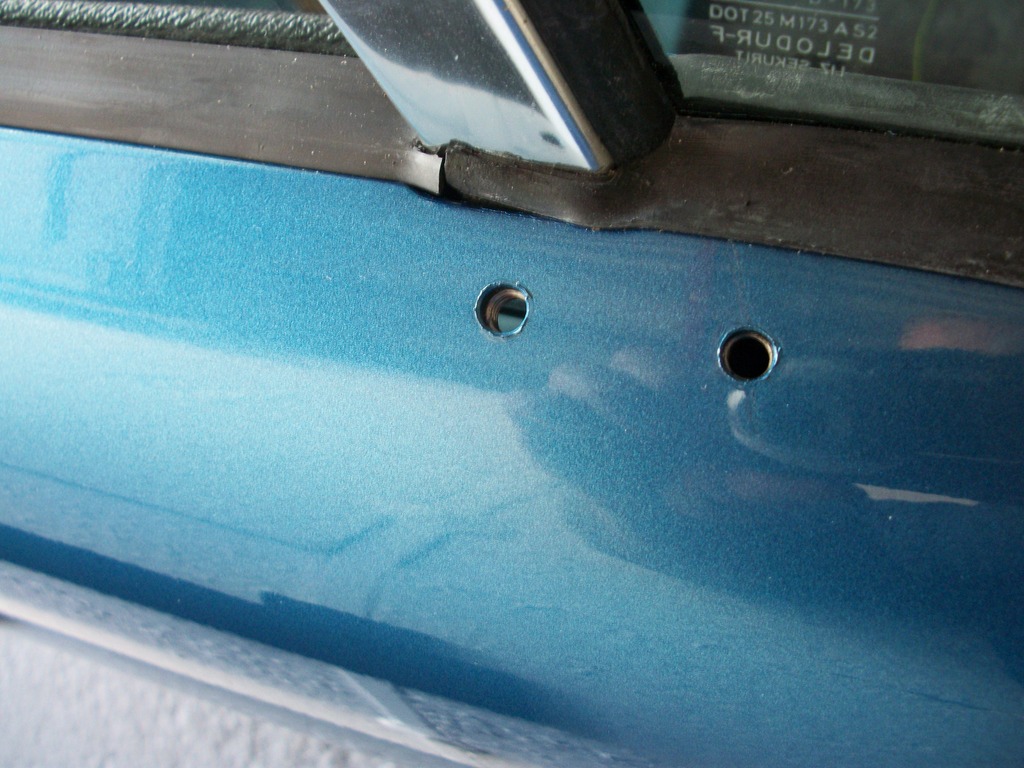 Thinking of putting a side view mirror on pass side of my '73. If I remember correctly when havin the panel off, the nuts are welded in place on the inside for the screws aren't they? Even though it would pain me to do it, you could drill from the inside through those to create the holes?