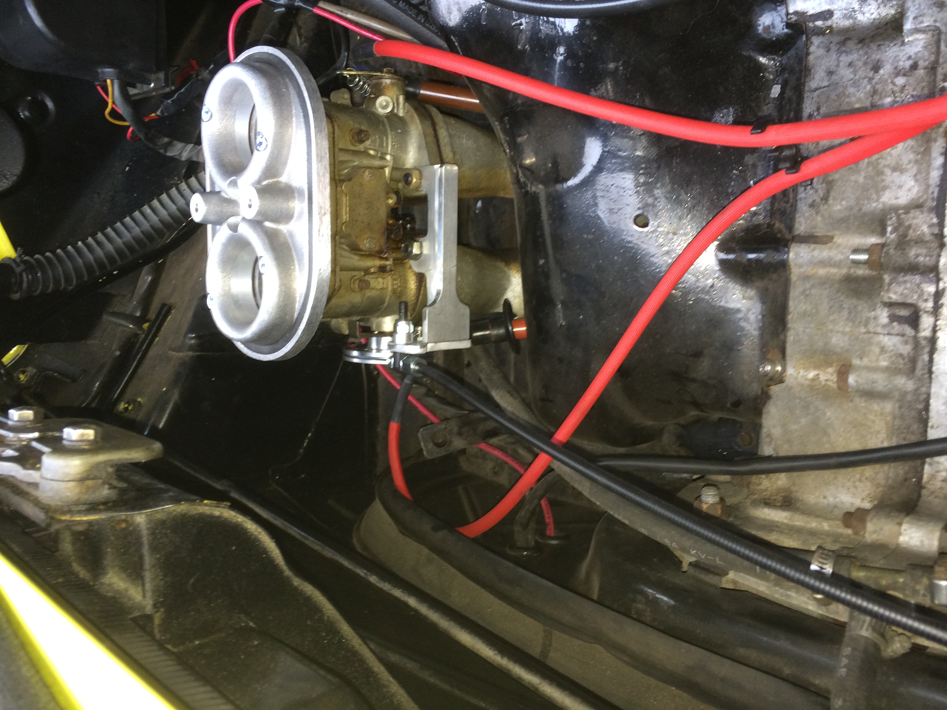 Is it me, or is the bar style dual carb linkage pretty stiff? Finishing up Mark's car this am it just seems like it takes quite a bit pressure to push down the gas pedal. Cable itself is silky smooth. I did convert to a lighter spring. Helps a little. It feels like a drive to Medford would wear out your leg. I recall the hex bar on my silver car was a but stiffer than my CSP linkage, but not as you describe. The Revenna green car also a hex bar system but is extremely stiff. I removed one of the two return springs and now has a tendency to stick. Cable seems to run freely, and also note this system has the cable connection at the passenger side of bar next to the carb, not a center-mounted cable. So, the cable runs the factory path except for the left-hand bend towards the bar which is a large radius. |