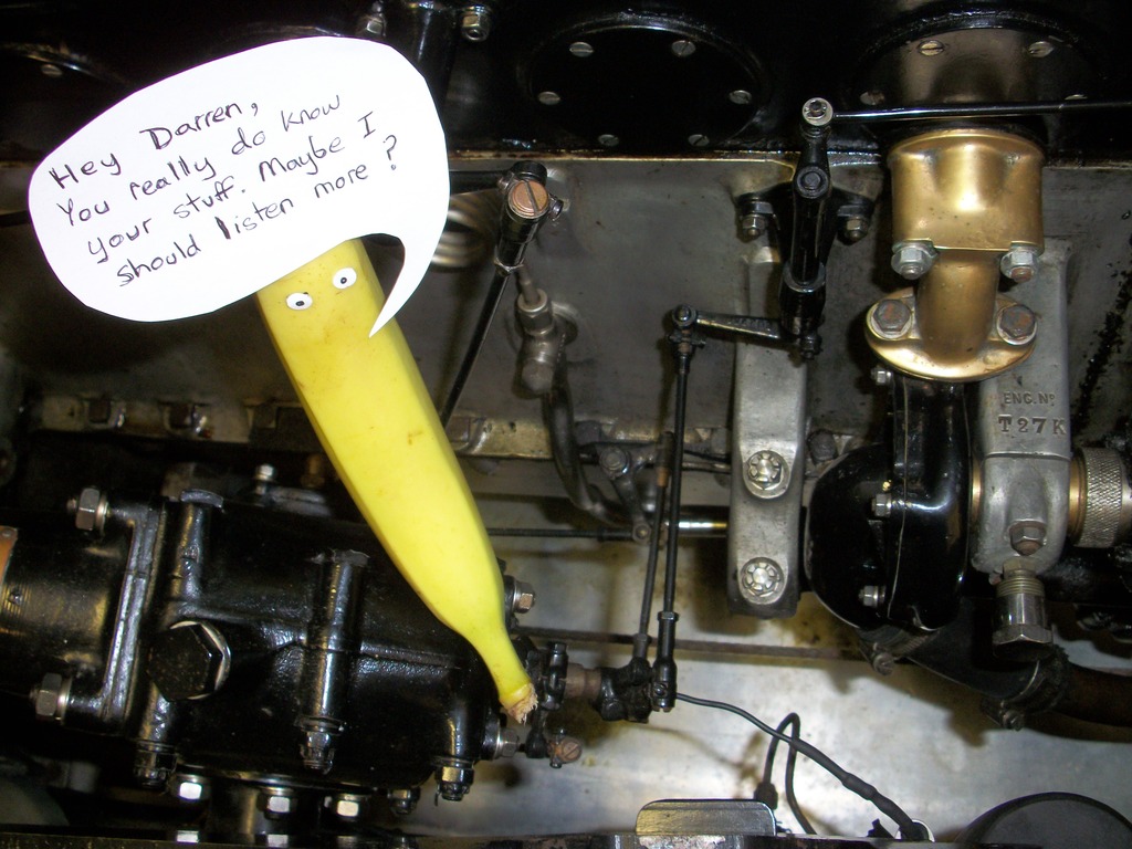 Fluidic/Thermal controls engineer..great, I love thermodynamics and HSD loops! What’s interesting is your comment on aftermarket or niche low volume manufacture occurrence rating. At R-R the best jobs are in Bespoke where low volume can mean just 1. We obviously make more than 1 of things, even though only one may be sold. This strategy makes FMEA very interesting. Only last week the first customer Black Edition (very low volume) Wraith’s were finished. These have an interesting wheel design (interesting for a Rolls-Royce that is) because it’s made of carbon fibre. I can’t say too much on the internet, but the development was troublesome in combination with the weight loads that could theoretically be placed on the wheel from the 3 ton car at 155 miles per hour +, versus the designers brief and aesthetic. Suffice to say the whole engineering ethos behind the choice of carbon fibre as a construction material fell to the engineering practicality and safety resulting in a carbon fibre wheel that’s actually heavier than the standard Wraith alloy. This is a good example of what I was trying to express about “all good intention” by the throttle linkage makers. I know most responses to my posts in this thread have rightly challenged my credibility and experience, and I’ve said a few things to try and substantiate them, but something else that is worthy is my own car collection. This runs from pre second world war to current cars. I have a collection of finished restored cars (my life’s work) and cars stacking up to be restored. These kinda chart and document the history of car evolution. This evening after work (and working on my 14) I thought I’d share some in relation to linkages which people think I don’t have any experience with. From Edwardian times throttle linkages have evolved from large heavy solid metal bars, thru dainty rods, on to wire cables and now FBW. I have cars with all of these examples that I’ve restored. The very early cars were exceptionally crude but very ingeniously and beautifully engineered. Throttles didn’t always start off under your foot, they were on hand wheels (like a steam train), hand pull levers, and attached to the most odd things in the cabin. Foot pedal accelerators started to become the norm very early in the 20th century (although they first appeared before 1900) each car manufacturer had their own idea. What was common however is the ingenious methods to connect their throttles to the carburettor. For a time even some manufacturers had part throttle on the floor as a pedal, idle throttles on the steering wheel and choke/start throttles on the dash! Basically 3 sets of mechanical linkages to one single carb, each pulling on a different lever via the most elaborate “watchmakers” engineering. The simplest ball joint would have phosphor bronze cup bushes each side with tension springs inside the ball joint to give fluidic contacts between ball and cup, take up wear over time and be ever reliable. The basic bell cranks were cast in the finest steels, to Victorian aesthetic designs with white metal or bronze bearings, some even incorporating automated oil feed systems built into the car. Not only were throttles done this way, timing advance was too. In tonights pictures I’ve taken, I chose an early 30’s car from my collection so that you might recognise some basic parts. This is when distributors started to look like what you’d recognise as distributors and so on. In the early days of motoring there were no vacuum advance or centrifugal advance of the ignition timing, so you had to twist the distributor by hand, while driving. Some manufacturers like Bugatti had the distributor poke through the dashboard at you to make it easy to adjust your timing, others created more linkages for you to push and pull or slide when you were driving. Again different manufacturers chose different methods it wasn’t standardised, but all involved mechanical linkage. Some even back in the 1920’s had ride control (adjustable suspension) via adjustment of oil pressure to the dampers (shocks if you will). Guess what, more linkages around the car. These are days before hydraulic brakes, so yet more rods and linkages across the chassis with clever mechanical transitions to take into account suspension movement and steering while using brake rods. The car I’ve chosen in the photo actually has another set of rod linkages for a brake servo which works of a dedicated clutch plate on the side of the gearbox at 90 degrees to the motor drive clutch. In certain gears this mechnically engages with the footbrake lever to a collection of additional servo brake rods giving greater mechanical force to the front brake drums. So all in all this car is linkage-tastic, you might say. And boy was it a challenge to dismantle, restore and set back up as a result. I learnt a hell of a lot on this car alone. Here’s some of the basic linkage controls on the steering wheel. You can also just see the carb start lever on the dash behind the throttle open position on the wheel. (IMG:http://www.914world.com/bbs2/uploads_offsite/i265.photobucket.com-18255-1463170009.1.jpg) The way it works is with a set of ever decreasing diameter tubes within tubes all the way down the steering column. The largest tube is the steering itself which has the worm gear attached in the steering box at the bottom. The other tubes run trough oil seals and bearings to exit out the bottom of the steering box in the engine bay. These have levers attached that connect to numerous control rod linkages that go off in this case to….the top one turns the distributor for ignition timing, the next one goes to a linkage and bellcrank which actually passes right through the engine block between cylinders 3 & 4 in this straight 6 to reach the throttle lever on the carb. The final link goes off to connect to the 4 dampers one on each axle which stiffen or soften the ride. (IMG:http://www.914world.com/bbs2