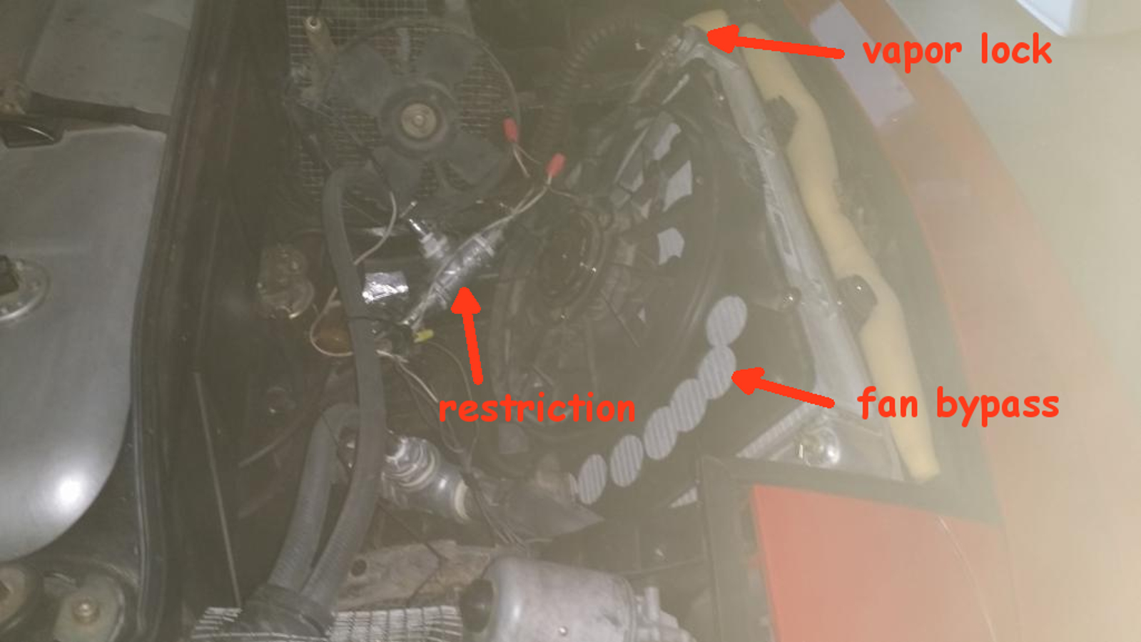 http://210.101.116.115/fisita/pdf/H202.pdf Some numbers. SBC powered vans or pickups have the most capable cooling system for the duty cycles used.The sizes and flow rates for them could be marked as a maxima. A 1-1/2" X 96" hose will flow less than a 2-1/4" X 24",the pressures from a given pump similar to the Chevy's, Area of the radiator opening port,or facia must be sized to flow at average city speeds,40kph/25mph. A manometer check of the working air pressures is required to ensure the flows can be achieved without fan assistance. Equal pressures on both sides of the rad equals no flow,and the cause of rising temps. Vapour lock in the system is also problematic,a no bubble pipe and rad will cool better as the area of contact is larger. All of this has been sussed for decades,a different setup will yield different results. (IMG:style_emoticons/default/smile.gif) / A custom fan shroud,to carry the fan you have,so all the air passes through all the rad. https://www.youtube.com/watch?v=G8cz_5eP81U The number of 90* bends,in addition to kinked hoses,will limit the flow. / |