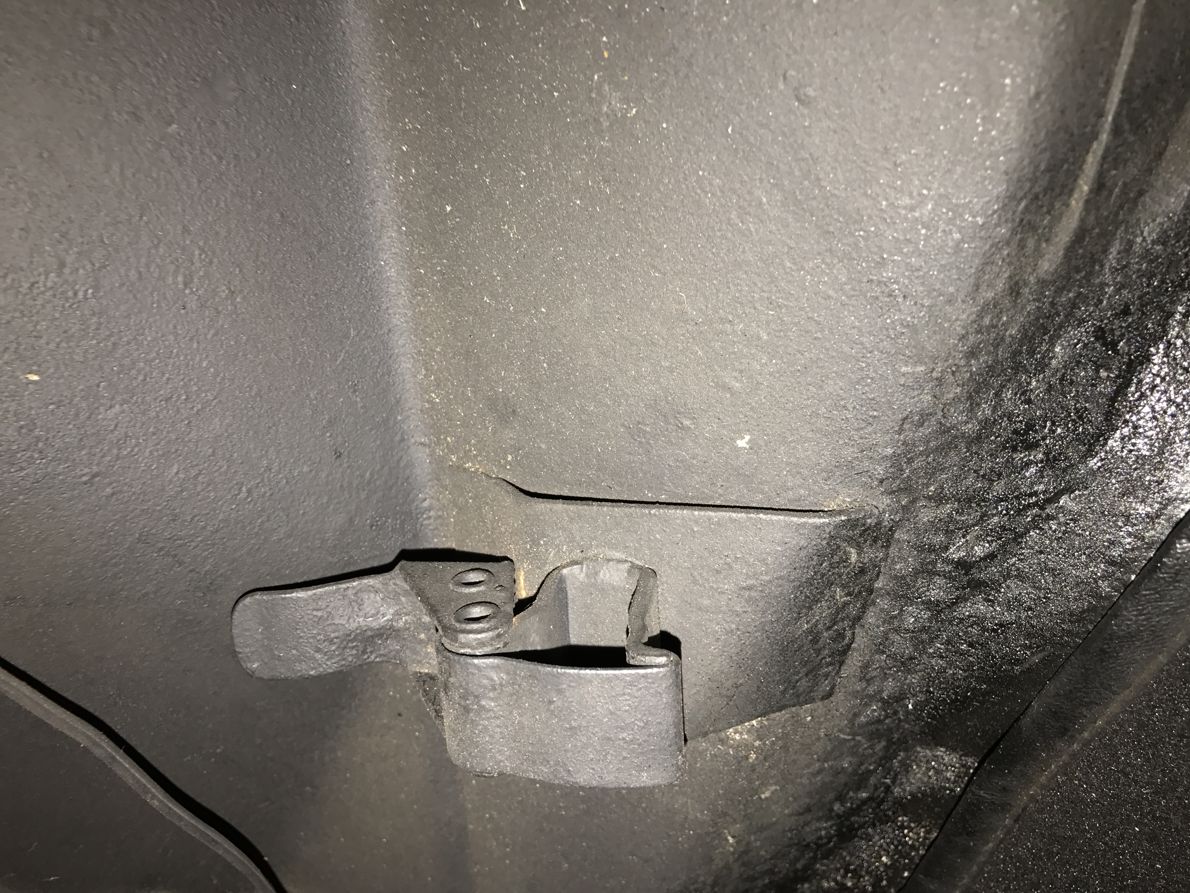 To take the jack with me I bought these rubber straps w/hardware from 914Rubber. Today I find that there are no hook-up point in my trunk for this (must be wrong year). There is however a metal clamp (that seems to work), to hold the jack. In the Haynes manual it shows how the clamps hold the jack. But mine does not fit. Please see pictures and comment. Car is from 1972. Thanks everyone. |