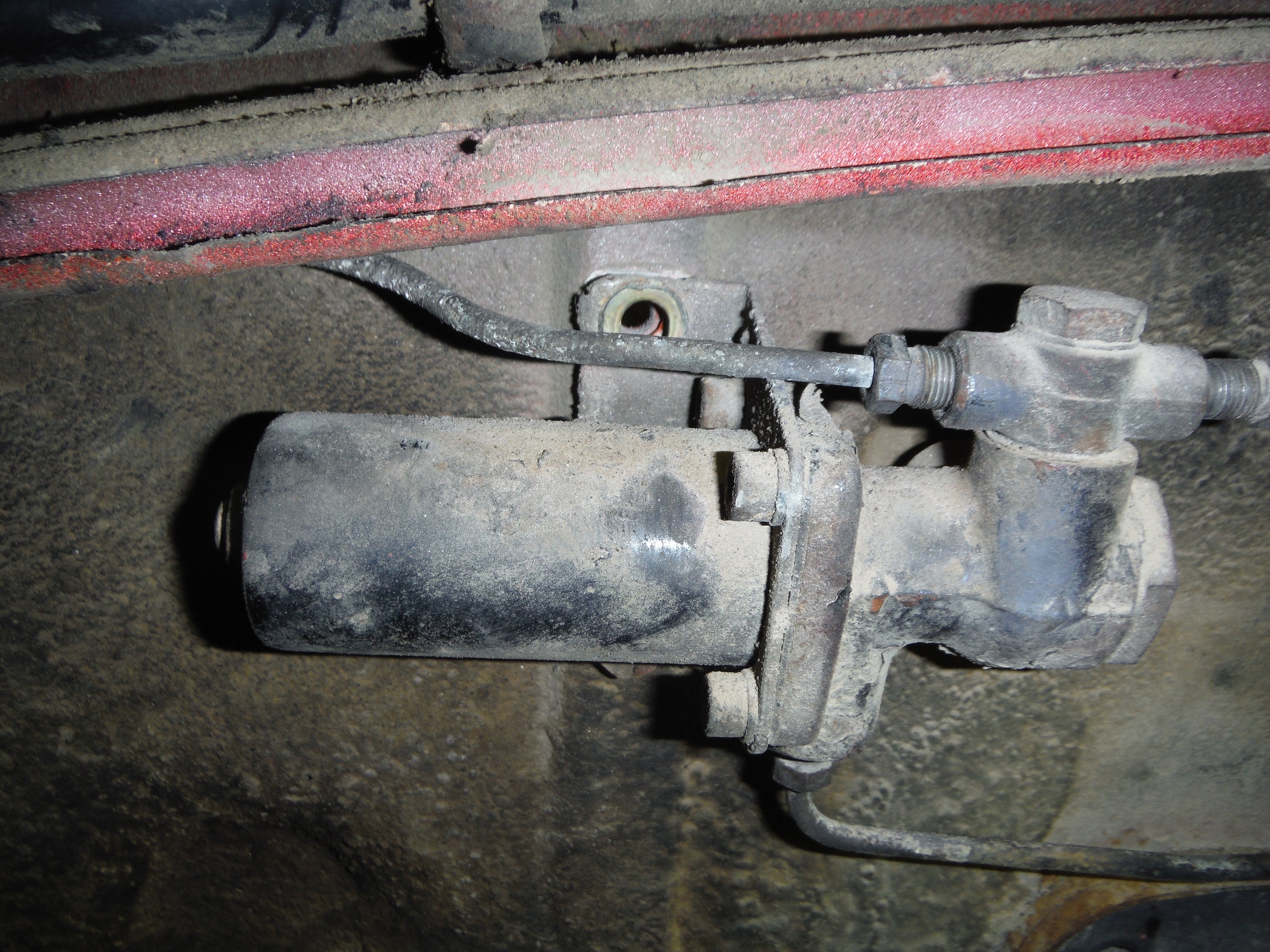 Here's the skinny, and, think "economies of scale" Early pressure regulators had a fluid inlet at the bottom and a fluid outlet at the top. A single inlet was fine but, the outlet now needed to go to the left and the right sides of the car. A brass "T" fitting with a banjo bolt was employed to do the job. The valve had always been bossed for multiple outlets but, only the one at the top had been tapped to 10x1. In Garold's picture above you can see the boss on the early regulator on the left (circled in green). Later pressure regulators were simply tapped on the top "and" now the back side facing the firewall. The right side line went into the back and the left side went directly into the top. This did away with the more expensive components (brass T fitting, banjo bolt and copper washers). You can see the later one with the same boss tapped to 10x1 on the right (circled in red). Eliminating the T was a cost saving measure. ![]() So... the down and dirty; early ones have the brass T, later ones do not. If your pressure regulator is missing you can tell by the VIN or, by your lines. Early ones have straight line ends that go directly into the T. Later ones have 90 degree bends at the end of the lines. |