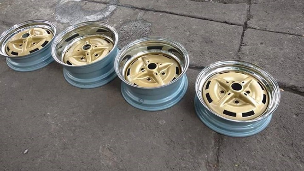 That style of wheels was also found on the 74 914s that didn't come with the optional alloys (though not gold or widened) in 5 1/2" X 15" size.