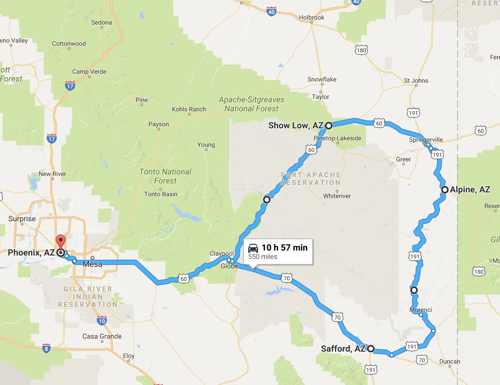 Drive cool road. Sleep in Show Low Friday night. Drive cool road. Sleep in Safford Sat night. Drive home will be a little longer but will likely be driving thru the desert in the morning instead of late afternoon. NV UT CO NM folks can do rt 191 again (IMG:style_emoticons/default/biggrin.gif) OK - here's a plan that includes Rt 191 #5 PMS tour Friday AM Friday Drive PHX > Safford (165 miles) Overnight in Safford Saturday Drive Safford > Show Low via Rt 191 (210 miles) Awards dinner Saturday night in Show Low Sunday - go home through Phoenix via Rt 60 through the Salt River Canyon (another top 10 AZ motorcycle road -- 175 miles to Phx) OR via Rt 40 (50 miles north of Show Low) So round trip starting and finishing in Phx is 550 miles and as far as I can tell we don't touch Rt 66. I'm game is the group is...Talk amongst yourselves |