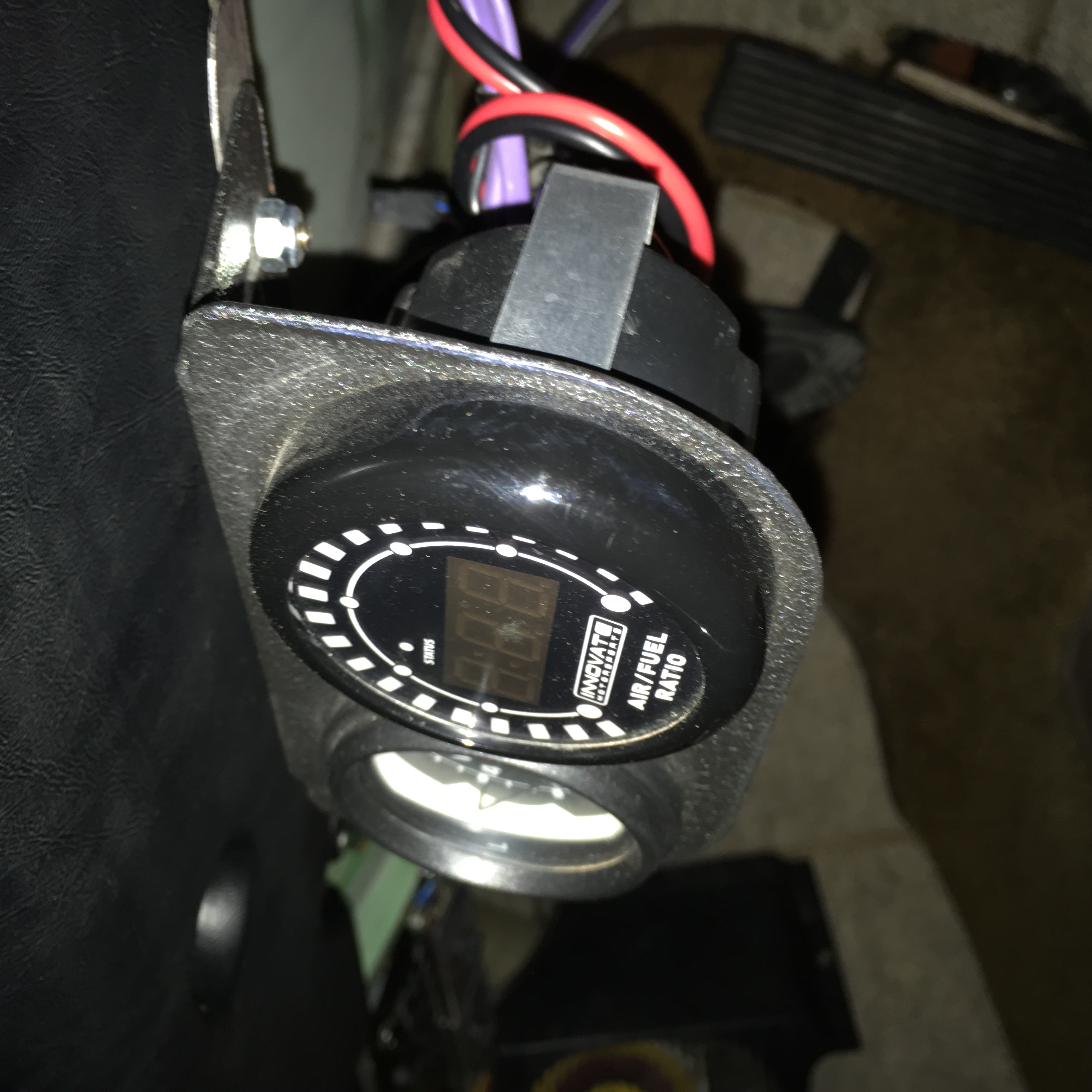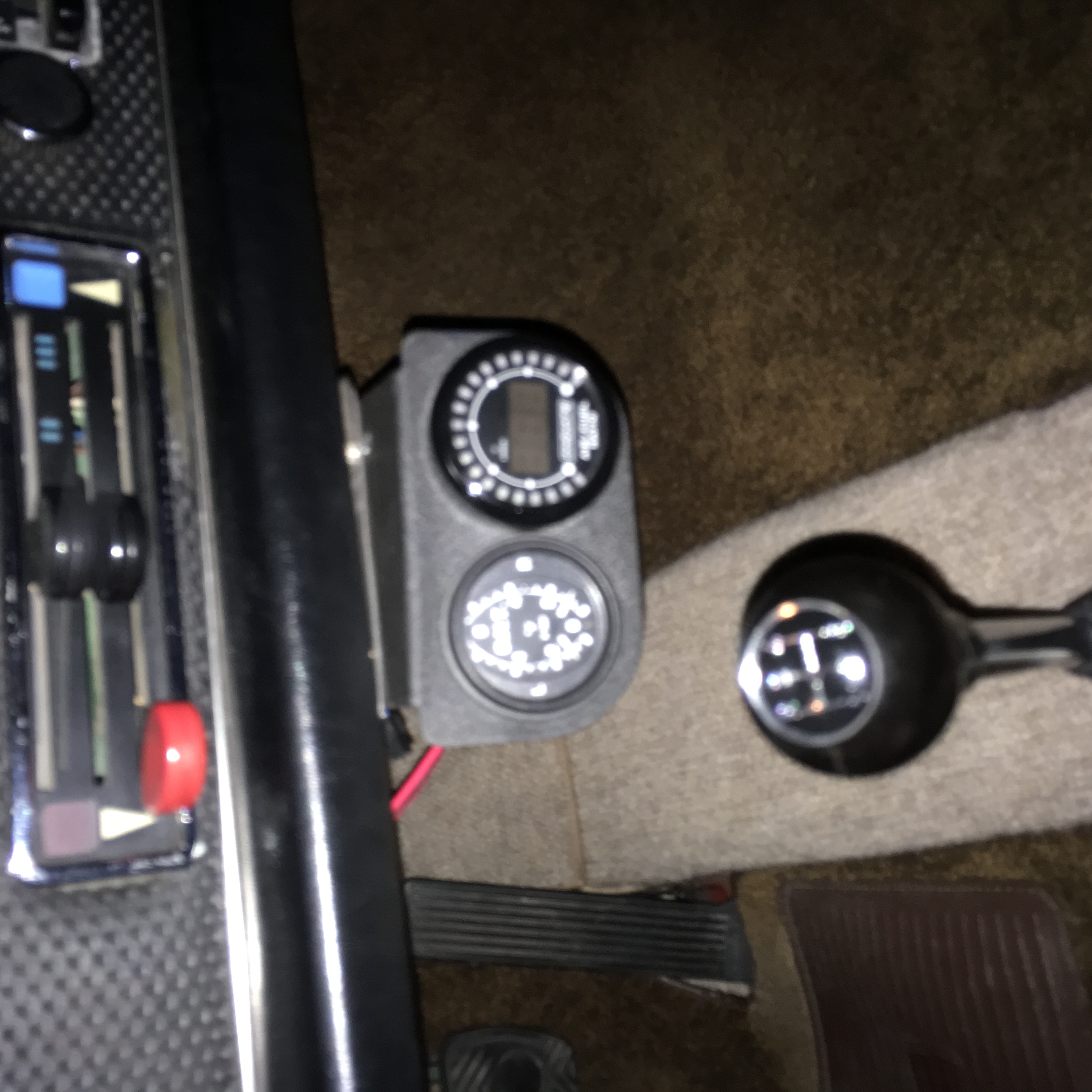 Rennmetal makes the one I have. Holds 2 gauges. Thanks.....you don't happen to have a web link? Hmmm. They were a vendor on this site a few years ago it I can't find a link either. I can look thru my paperwork at home but I won't be there for 3 weeks. Hopefully someone can help before that. It's a simple design. Literally an L shaped bracket with 2 mounting holes on the short leg and 2 gauge holes on the long leg. Remove the 2 screws that hold the ashtray mount to bottom of dash and install L gauge mount. I moved mine to under the dash using the same mount shown below. |