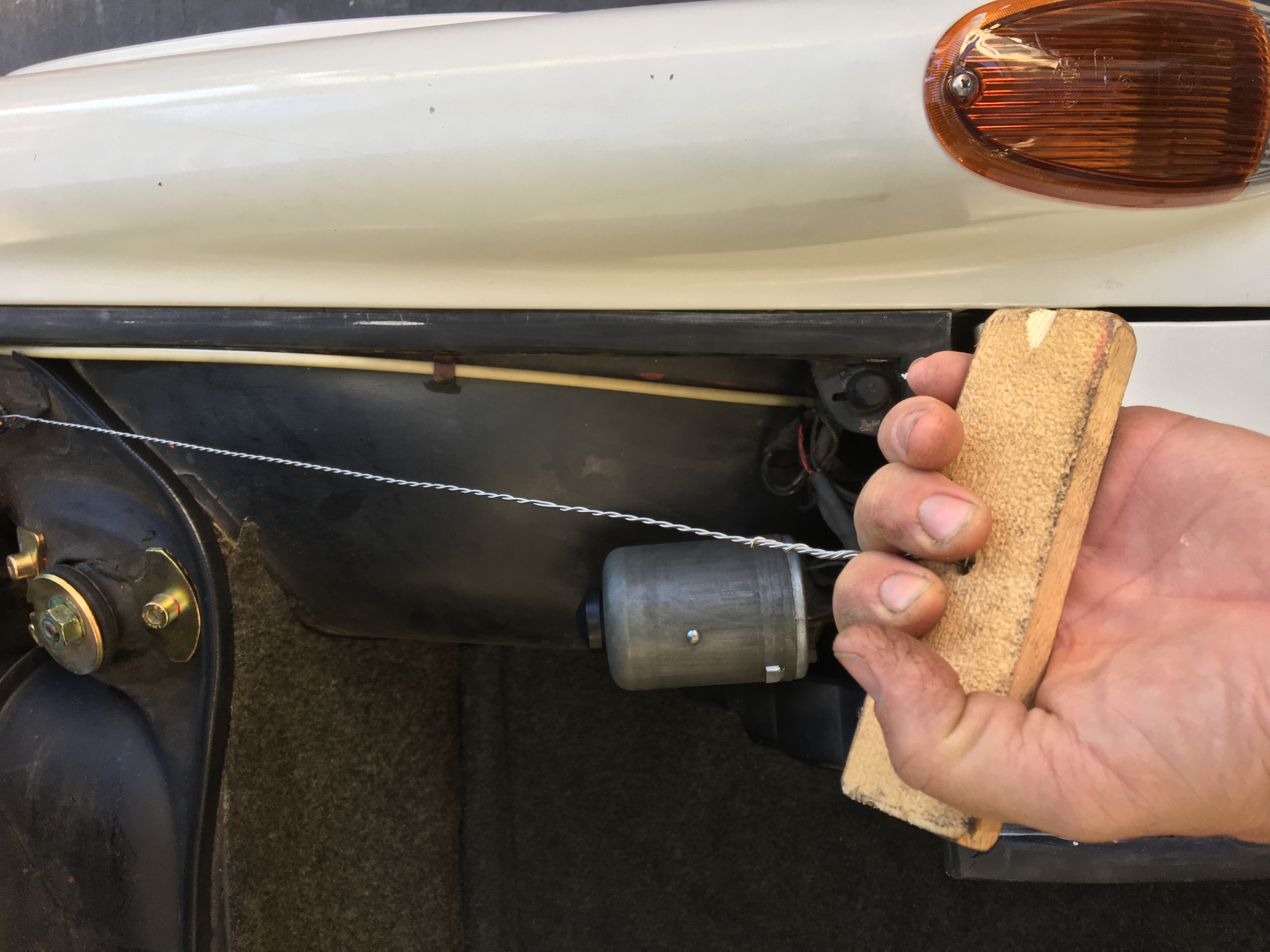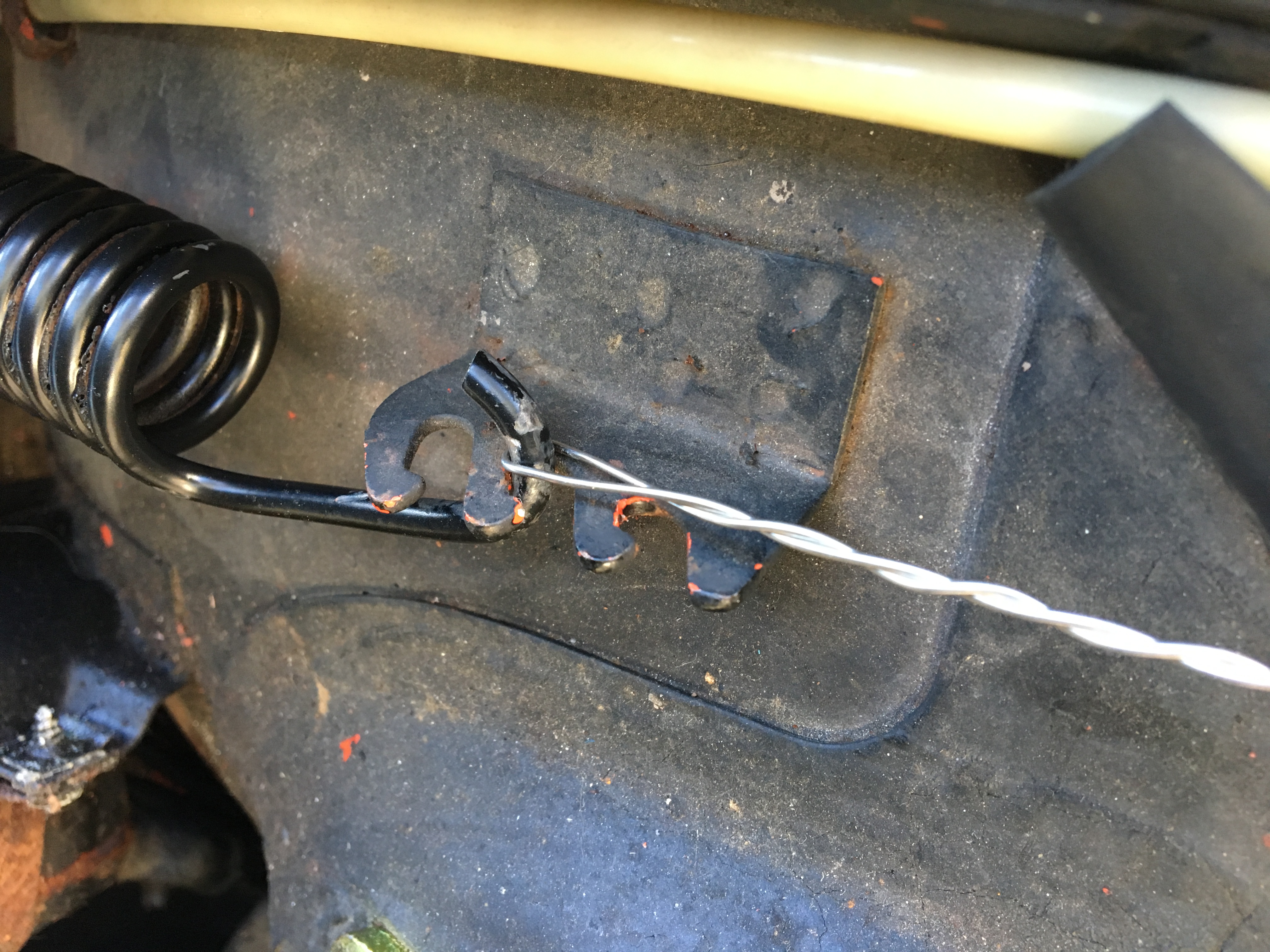 Here’s an easy solution and most will have what you need in the garage. Make sure the wire stays on the outside when you hook it so the wire will be free to remove and not trapped between the bracket and spring (IMG:style_emoticons/default/beer.gif)