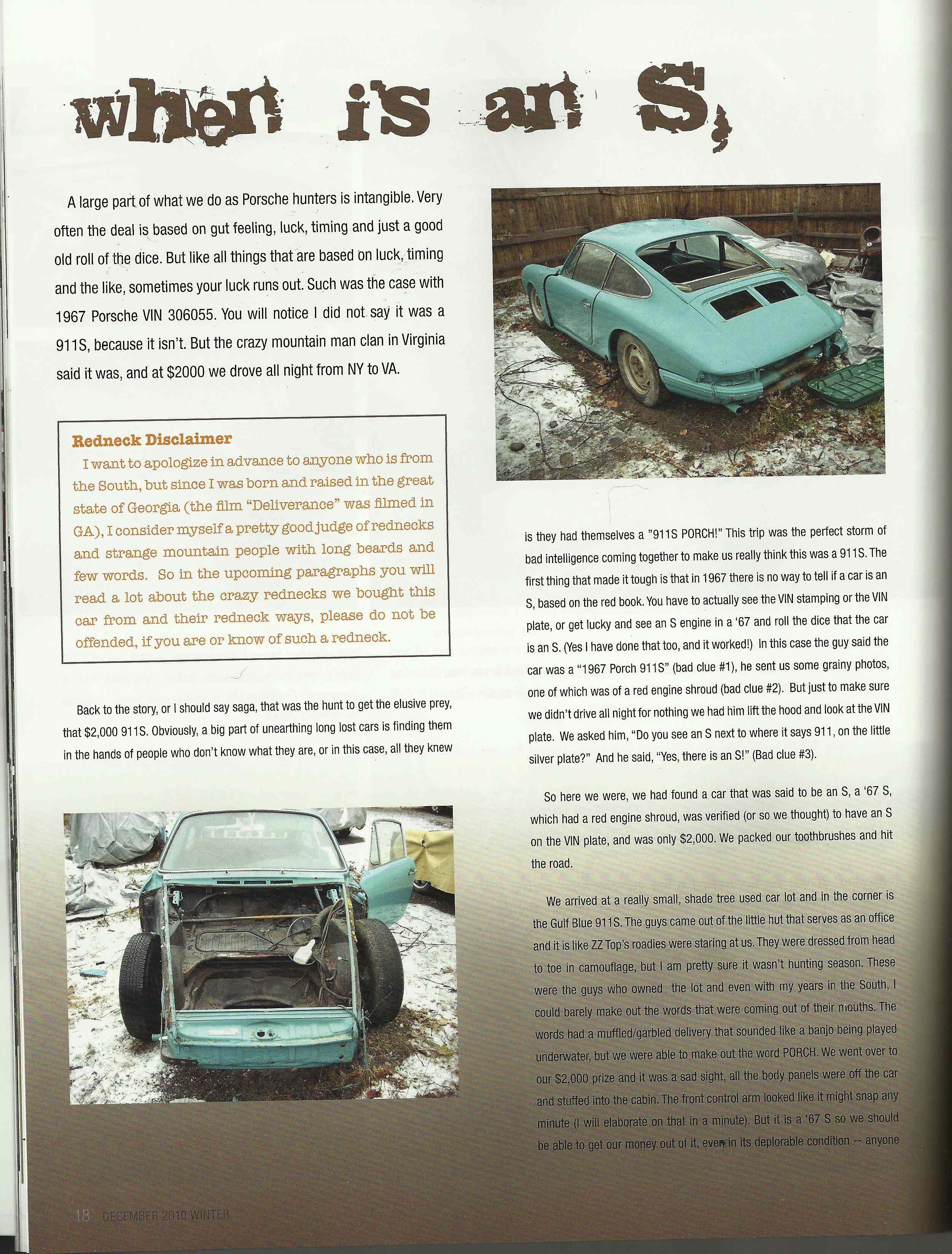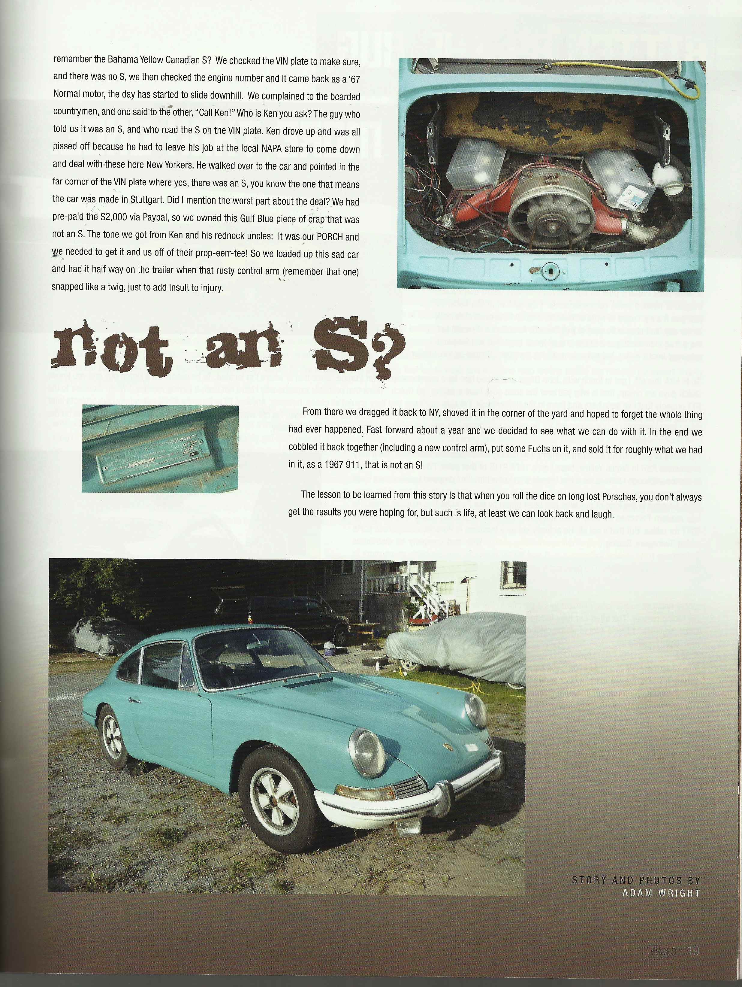 But, would a guy who has that many 914s really not know what to look for? It could be a ruse........? I agree, be very careful thinking you are out-thinking a guy with a yard full of 914's. It could be a BB, or it could be a car with some yellow paint and wheels. The difference is in the details. Buying a car based on a few visual cues can lead to a lot of $$$ trouble. Like the time I went to go buy a 67 911S, except the S was the S on the VIN plate that meant it was made in Stuttgart. You can read about it here. Attached thumbnail(s) |