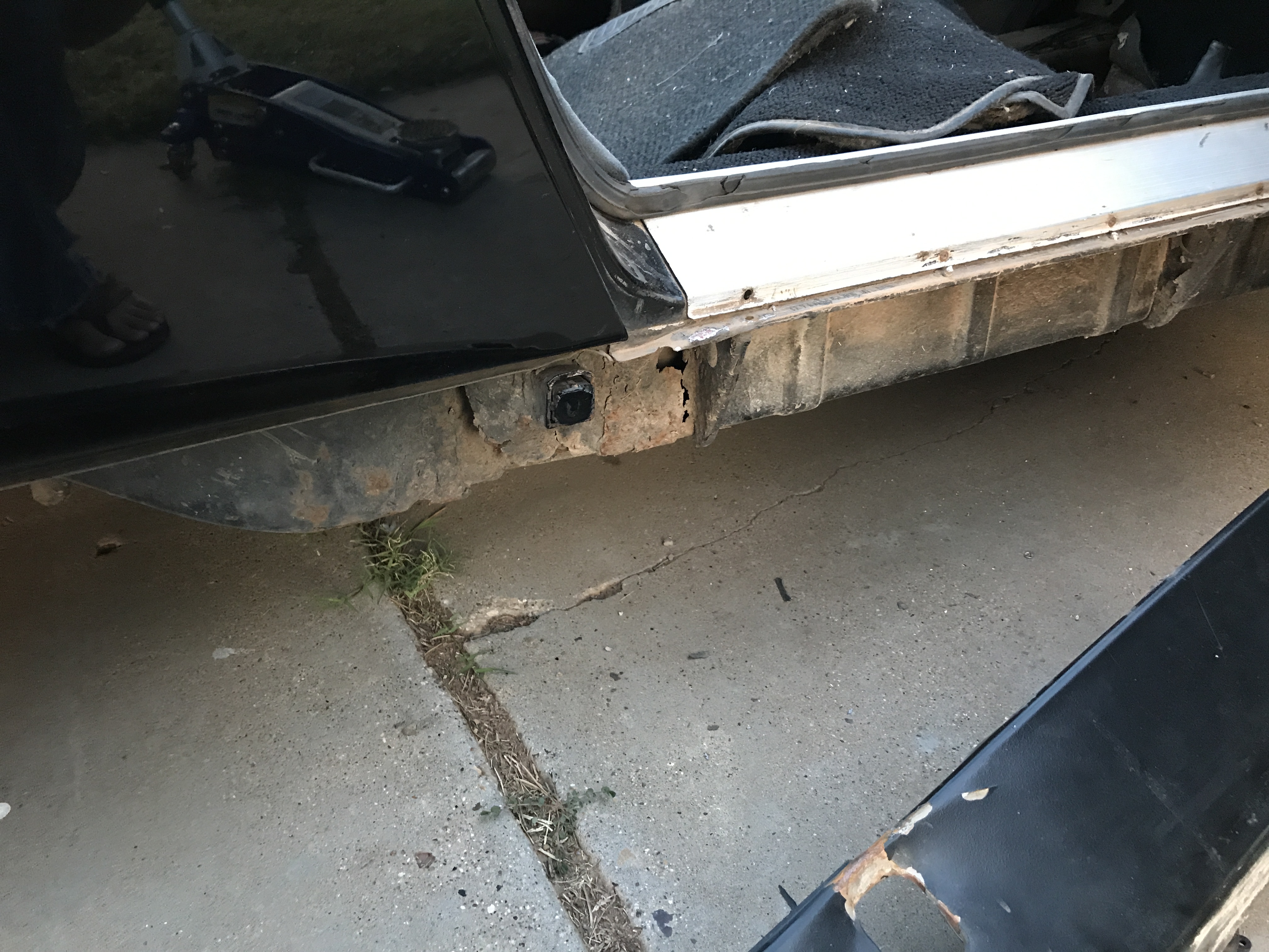 Rear trunk is good actually been under it, and above looks solid. Battery tray yeah. What I really want to know is what this car would go for in it's current state as I'm pretty set on selling it. Hard to make a call given the small # of pictures, but unless it's structurally sound, you need to price it like a parts car because that's what it is. If the engine and tranny are good, I'd say it's worth ~$3k, depending on the condition of the other parts and the full extent of the rust. |