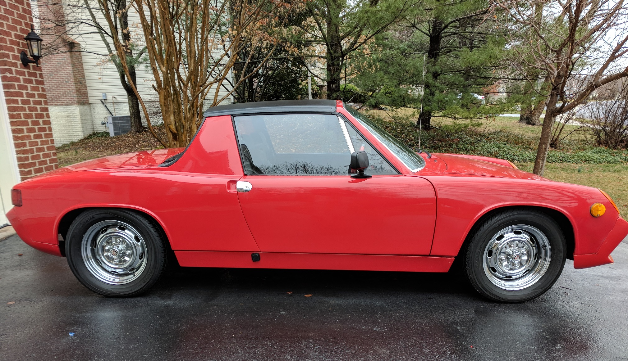 https://www.ebay.com/itm/253451832181 I want to make room in the garage for my next project, so I'm selling my 1971 Porsche 914/4. Not a show car, but a very nice driver with a solid body, nice paint, good interior, strong engine, and new rear brakes. Here are some of the important details: Baja Red with rare 916-style fiberglass front/rear bumpers and rocker panels Older paint work and restoration, but still presents well No serious rust issues anywhere (see pics) 1.7 L Engine (stamped EA091928, which indicates was manufactured in '72) with dual Weber IDF 40 2-barrel downdraft carburetors Engine is clean and leak-free; freshly serviced with new plugs, oil/filer, and valve adjustment both carbs just cleaned and rebuilt with new gaskets, o-rings, mixture screws, and floats compression test shows between 145-155 on all 4 cylinders new battery (Nov 2017) 5-speed manual transmission with new linkage bushings from front to back Five (inc. spare) chrome-plated 15” 4-bolt wheels with Yokohama 205/60 R15 tires New/rebuilt rear brake calibers Very Nice interior Luisi red and black leather steering wheel no cracks at all in the dash, which is rare for a car of this age drivers seat perfect, small tears in passenger seat the floor pans and doors are lined with Dynomat, which reduces road noise new Pioneer AM/FM/CD stereo w/ Bluetooth audio and hands-free phone Clean Pennsylvania title, plus receipts dating back to 1982 5-digit odometer shows ~900 miles, so I estimate the chassis currently has about 101k miles on it. Because of the age of the car, the odometer section of the title reads “exempt.” Links for additional pictures and video: http://s1262.photobucket.com/user/fbrock/slideshow/ https://youtu.be/82F0hUspCd4 Attached thumbnail(s) |