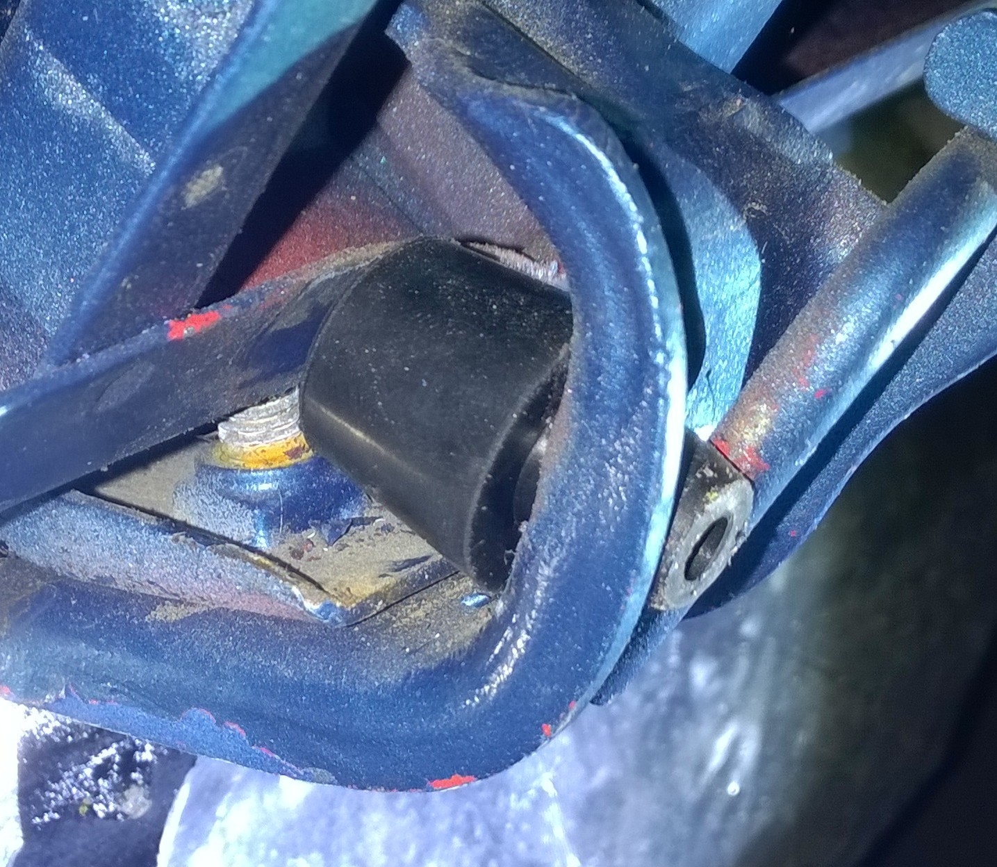 Are you talking about the little rubber bumpers in the hinges that stop the lid from opening too far, or the L-shaped piece that hangs from the engine lid and is held in place by the metal angle bracket?