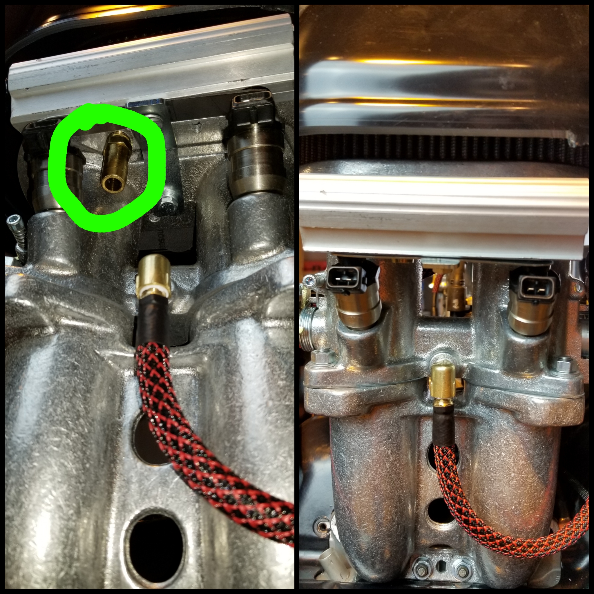 Cary's handiwork on the evaporation line fitting and the dressed vacuum line for the throttle body