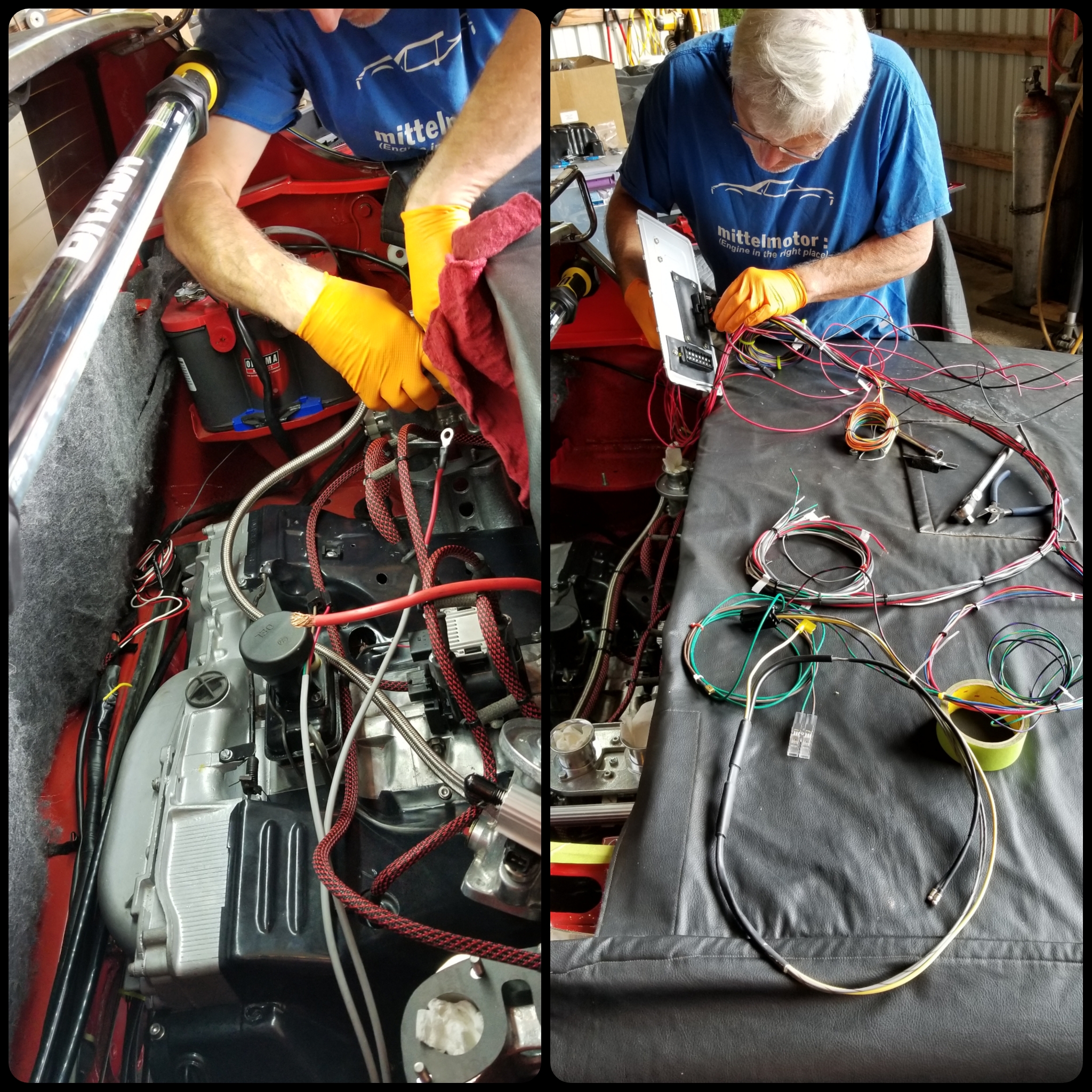 Engine in the car for harness mockup.