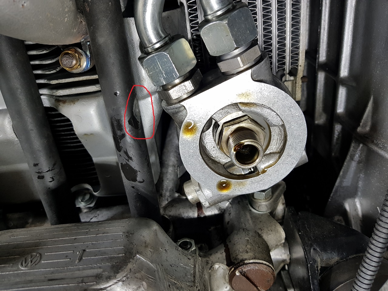 Ughhhh,...right now it feels like I should have stayed out of the garage entirely the last week and not touched the car. Following the blown oil hose and draining of the oil to check for sparkles and removal of all the rear to front oil hoses I was going to change the oil filter aswell.... Filter is on tight like a bugger (i have small hands so I cant grip is and loosen it without tools so I have one of those threearmed things that attach to a 3/8"' ratchet. Turning it as hard as I can and suddenly the filter twists...along with the sandwich adapter plate....which dents the #4 cylinder pushrod tube....