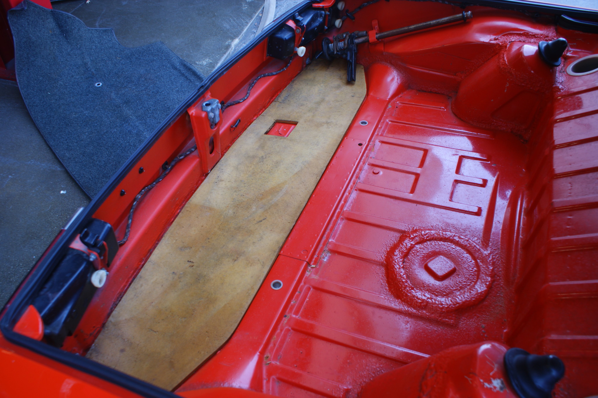 Foam pad goes under the carpet. We have not made it yet. Working on a molded piece in correct "yellow" foam. It's a prtty simple process, just need to get it off the list. mark Also we are starting to add the tire tie down grommet. Mark, I would like you to make one that is made out of a better material, more sound and heat reflective, insulation but not water absorption, like the 1/2" dynapad for trunks - could you cut it with your pattern to fit under the stock carpet, if so i would like one! for the trunk it would make sense to have a reflective surface due to heat transfer from the motor and transmission and exhaust under it. Phil |