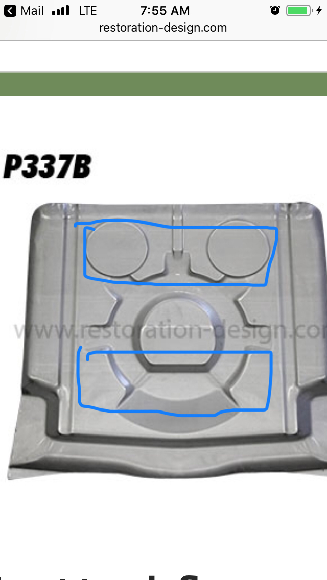 My thoughts are 1. Whats your budget? 2. Do you want it done right? I would post a WTB. Probably get those to cuts for ~ $100. An 18ga sheet would be ~ $15 and you wouldnt have a chance in hell of making those stampings by hand. I would get that whole floor, cut the piece out of your floor so you have one piece welded in, trim to fit and weld. If its a custom car/race car then do whatever... Also think 10 years down the line. (IMG:style_emoticons/default/agree.gif) ... Again (IMG:style_emoticons/default/biggrin.gif) Those would be really tricky patches to make it look right even with donor parts whereas replacing the whole bottom is fairly easy. Also, if you want to keep storing your spare tire there (which you should for safety), the shape of the front patch helps to nestle it in. I was under the impression you soCal boys can't walk 5 blocks without tripping over a good parts car. (IMG:style_emoticons/default/bye1.gif) |
