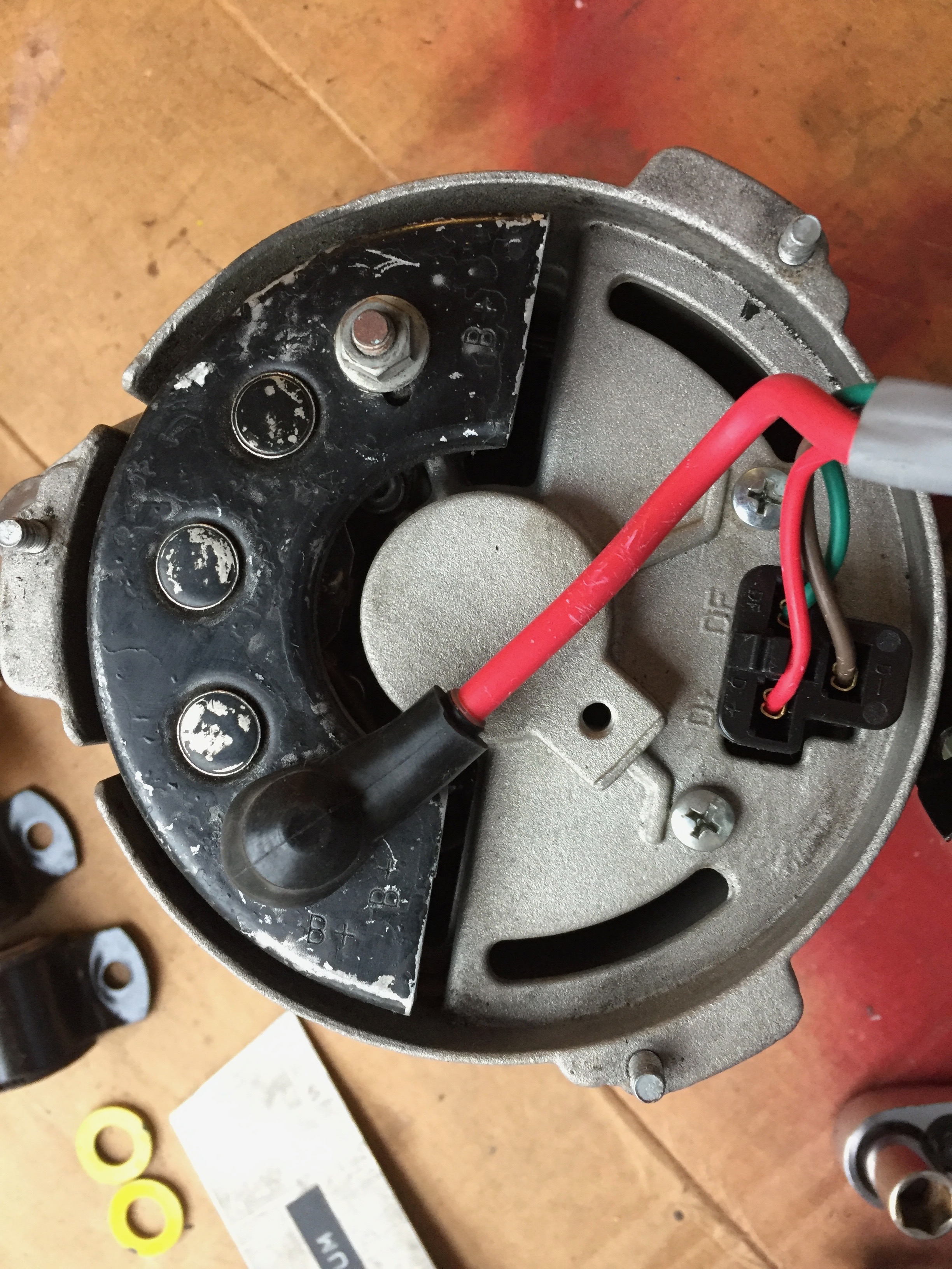 Any idea about the Alternator red wire? I have no idea where it's supposed to connect. Oddly, it looks like it's supposed to be there, the wire goes into the protective sheath and through the rubber grommet on the alternator. Here is another pic of #1 wire looking from underneath. Where in Socal are you? Thanks again! (IMG:http://narino.com/images/wire%20to%20alt%2002%20sm.jpg) |