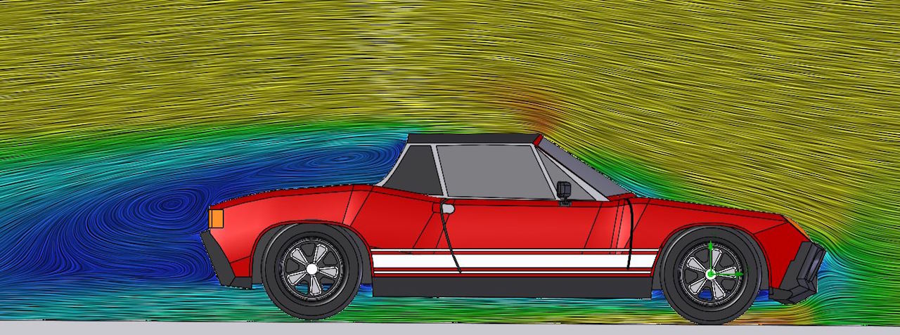 I snuck some time in after work today to toss in a 3D model of a 914 into Solidworks flow simulation. Shhh... don't tell the boss!