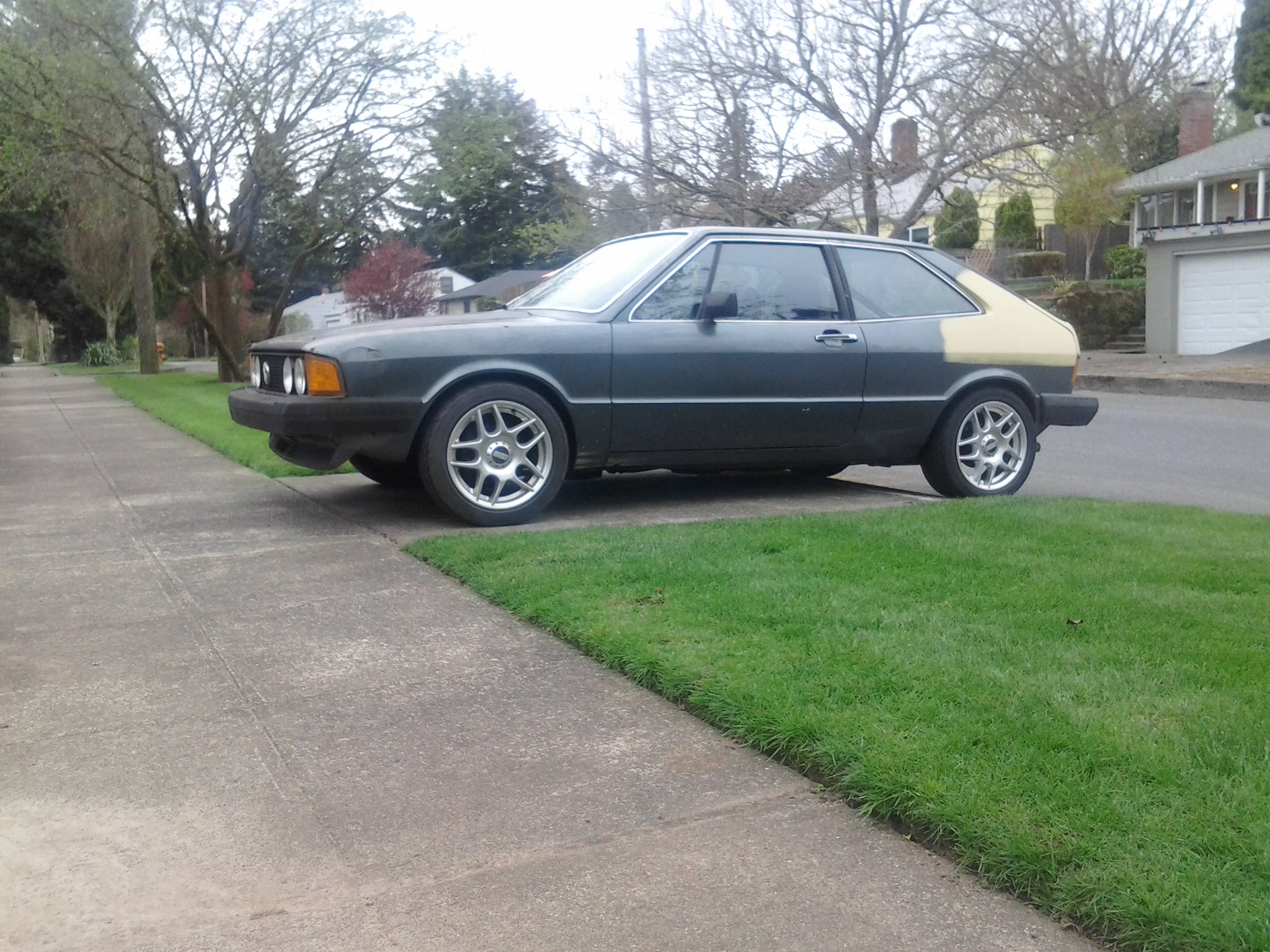 Great ideas guys. The good news is that the Scirocco was spotted by a friend of mine. It was left at NW 1st and Glisan. Base of the Steel bridge. This is crackhead corner for sure. Battery dead. Plates removed but under the seat. Washington Trip permit in the back window. Jumper cables in the back. My guess is they tried to get it going and it would not start. Got mat and ripped the hood prop rod off and scratched the hood with it. Car needs a complete paint job badly, so not really upset about that. BBS wheels and nice momo Prototipo with rare wolfburg horn button still on it.