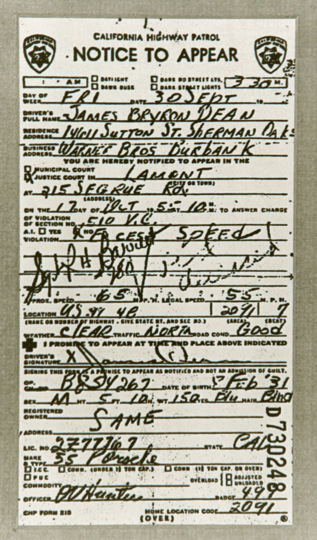 If he didn't die in the car, the cigarettes would have killed him. I have never seen a picture of him that he didn't have a cigarette in his mouth or in his fingers. I might have to watch "Giant" or "A Rebel without a Cause" tonight. By the way, this is STILL one of the most dangerous intersections in the central coast. (IMG:style_emoticons/default/sad.gif) ![]() |