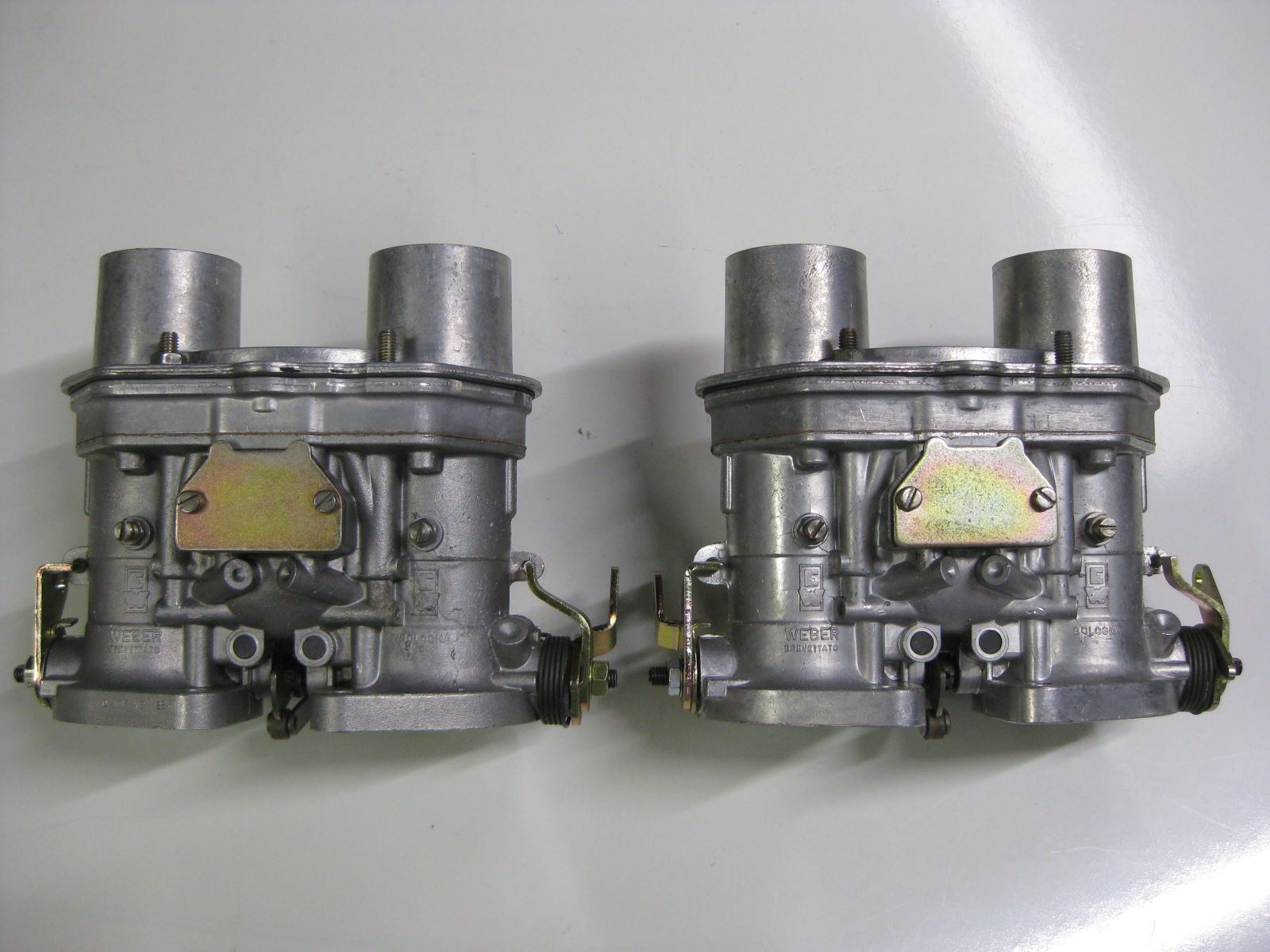 For Sale a Very Nice set of restored Weber 40 IDF These have just been rebuilt with all new Weber rebuild kits and have new Weber shafts and bearings installed. All parts sourced from Pierce Manifold. These are genuine Italian Webers and are the model #18/19 recommend by Weber as a special conversion carb specifically for VW engines. Type4 1700/1800 And also work fine on 2.0L They include the rare factory cast air horns. Specs: V-28 AV-4.5 MJ-115 ET-F11 AC-200 ID-50 P-50 N-175 You don't see them this nice that often. $590 for the pair with Free Shipping to US-48 |
