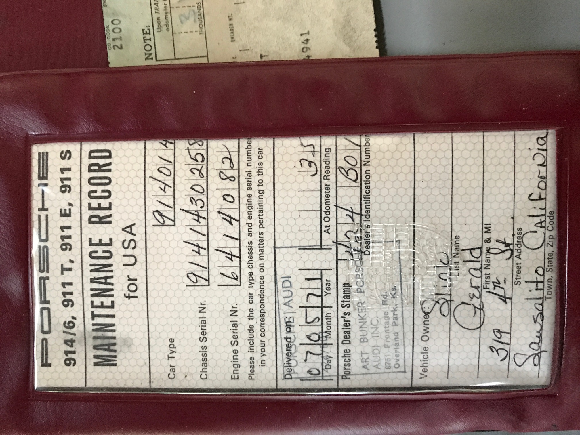 John is famous for his company Stainless Systems who made heat exchangers for 914s and 911s back then, finally selling out to Dansk several years ago. I just spent three days with John packaging up this car and some others for him, and found out that he does not have the original engine. He sold it to a guy in San Francisco years ago, but thought that he had located it but had not John bought this car with 28000 original miles on it from Gerald Slick who had originally bought it from Art Bunker Porsche Audi. He sold it to john in circa 1973. John promptly took it apart planning on installing a bigger engine, making a movable passenger seat, and designing a set of stainless steel modified heat exchangers for it. He never got around to it. The car languished for years. At one time Steve Gaglione had a deal to buy it (less engine) but after flying out to see John, selling his 911, paying for air fare and hotel, John changed his mind and sent Steve packing. I found the Eric Strenger M471 for Steve and he is very happy to have it. Finally all of these years later, John is cleaning up his warehouses and renting them on by one, so has limited space to store cars. 28 years ago when I visited john and saw the car going to hell beyond a stack of boxes, I told him that if he sent me the car I would put it back together for free, especially as we had EVERY missing part to do the job. 28 years later he took me up on it, |