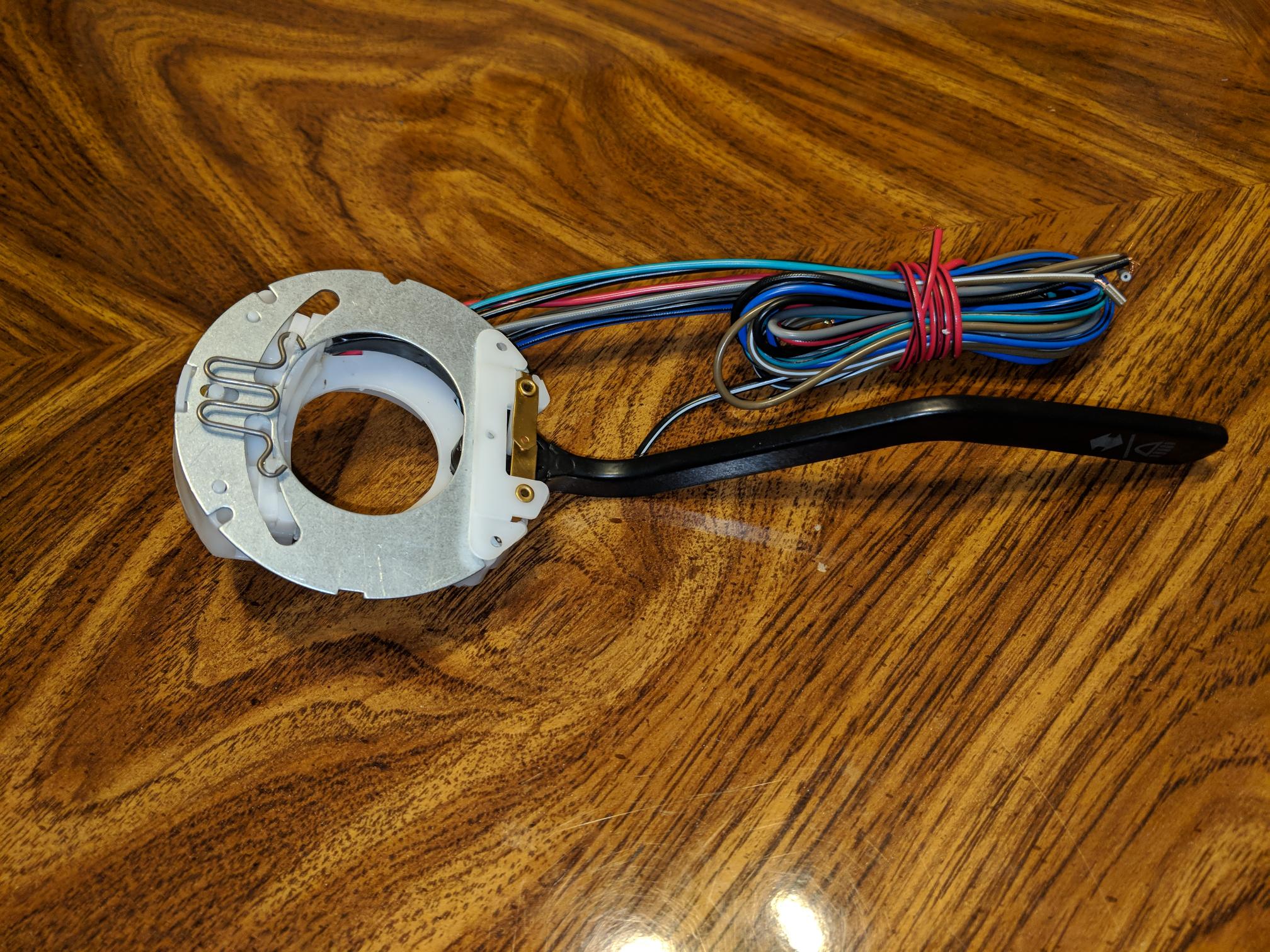 Yes, this is the same pic used for my dash lamps post but if you look at the turn signal at the steering wheel section the spring part seems to be missing. Also the nubs the spring would hook onto are broken off. I ordered a new switch from AA but it does not look as beefy as existing turn signals. Is it worth getting an old assembly with all working parts and clean up or is there a better new one than the $65.00 one I bought.