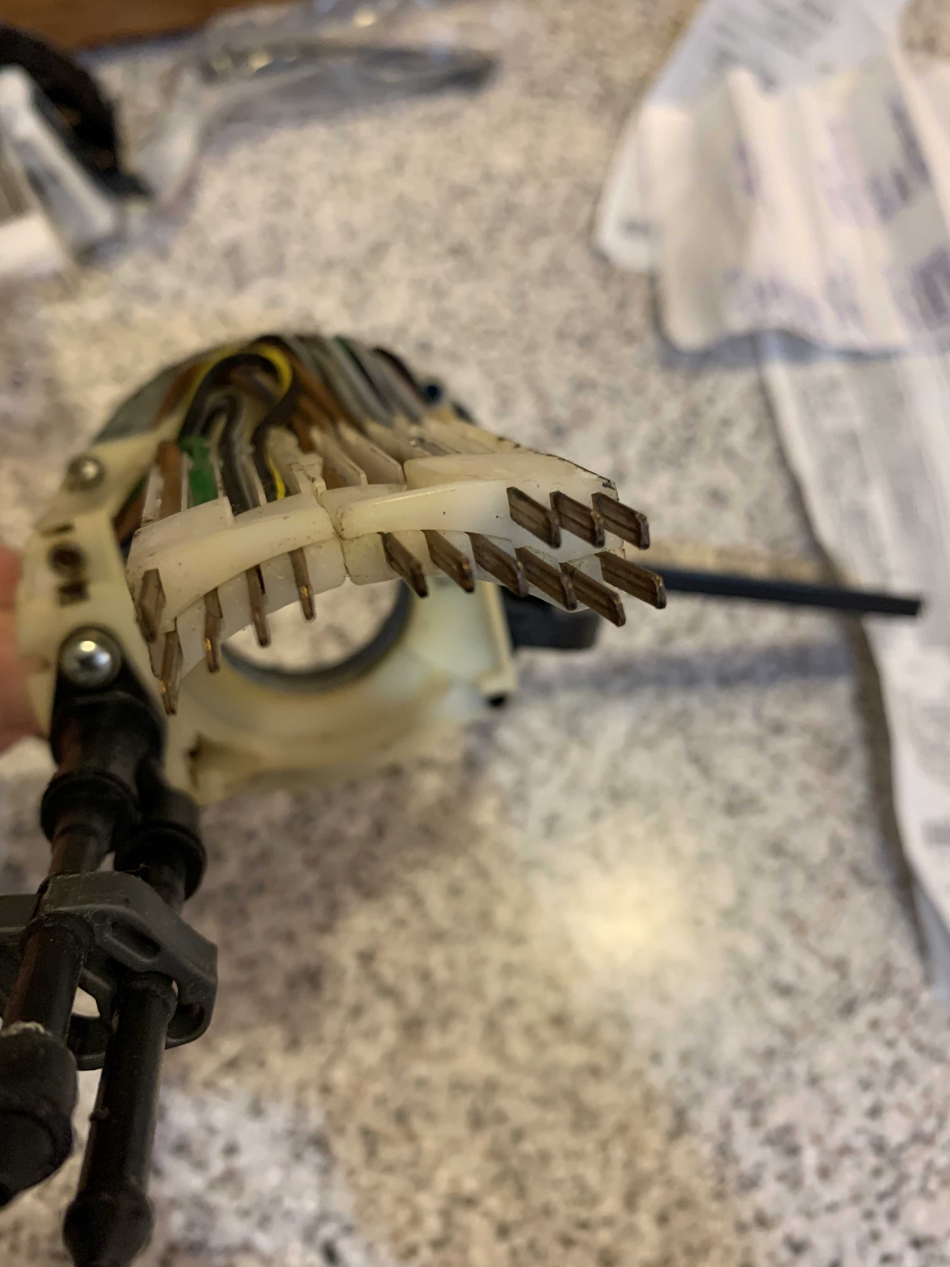 Stopped at this point and put steering wheel back on so did not separate the two switches. Attached is a photo of the new switch. The old one has a lot of copper showing that seems to have two sets of contacts that ride along the top and bottom of switch to ground maybe? The new one has more plastic. See attached photo for comparisons. The price was good at only $62.50 plus shipping. Also expected a connector and thought this would be plug and play. That is what the advertisement showed. Nobody has mentioned the nice veneer, which I am sure you are proud of. Sorry this has been a hassle cause I hate sending things back. My bad no problem, but when the vendor makes a mistake I feel I am doing them a favor. |