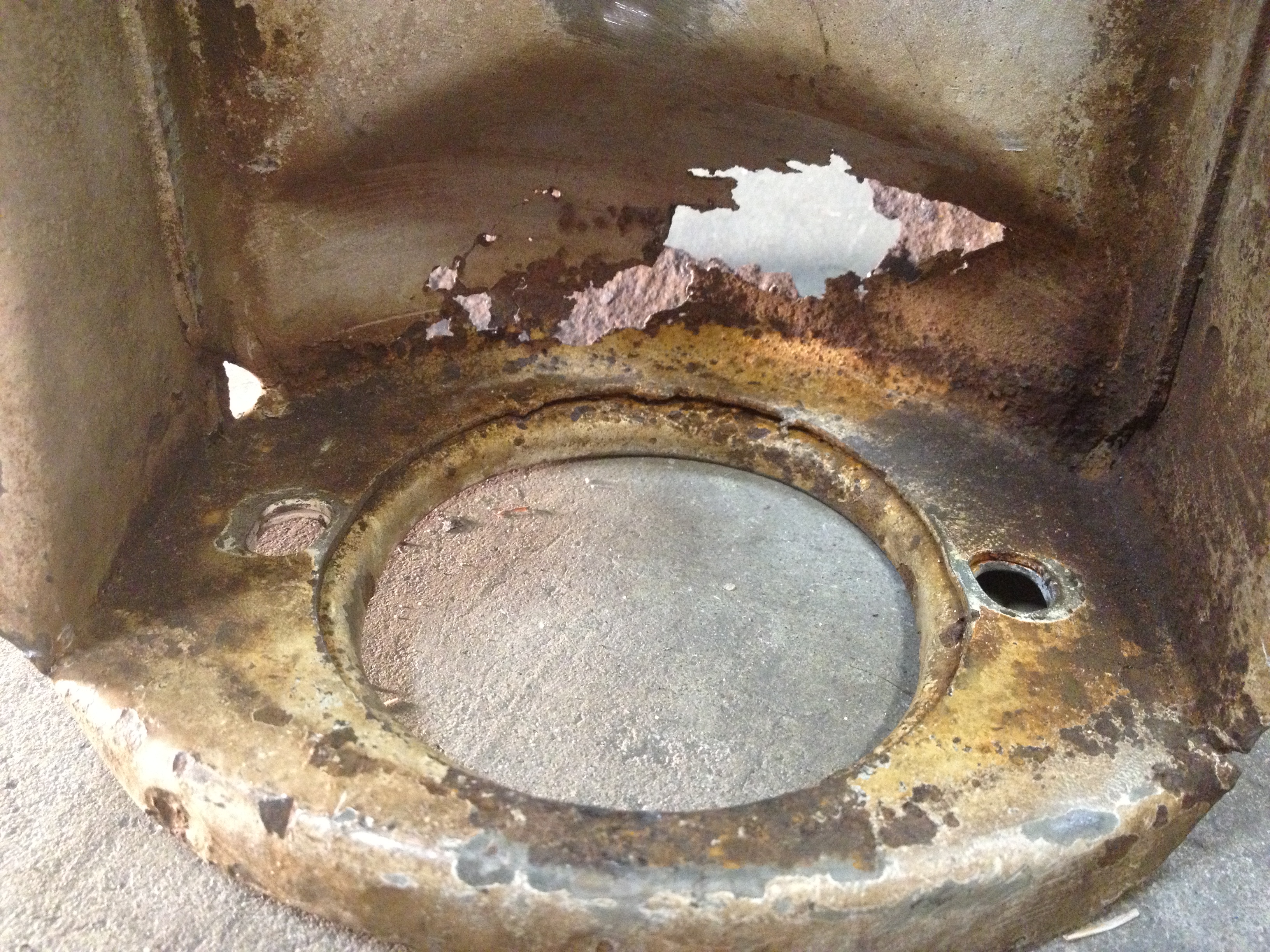 (IMG:http://www.914world.com/bbs2/uploads/post-7199-1223520815.jpg) Always rusting from inside out. A little blemish in mine, a screw driver went right through. ![]() shot of this same one inside, not terrible but very thin at the bottom, close to rusted through ![]() |