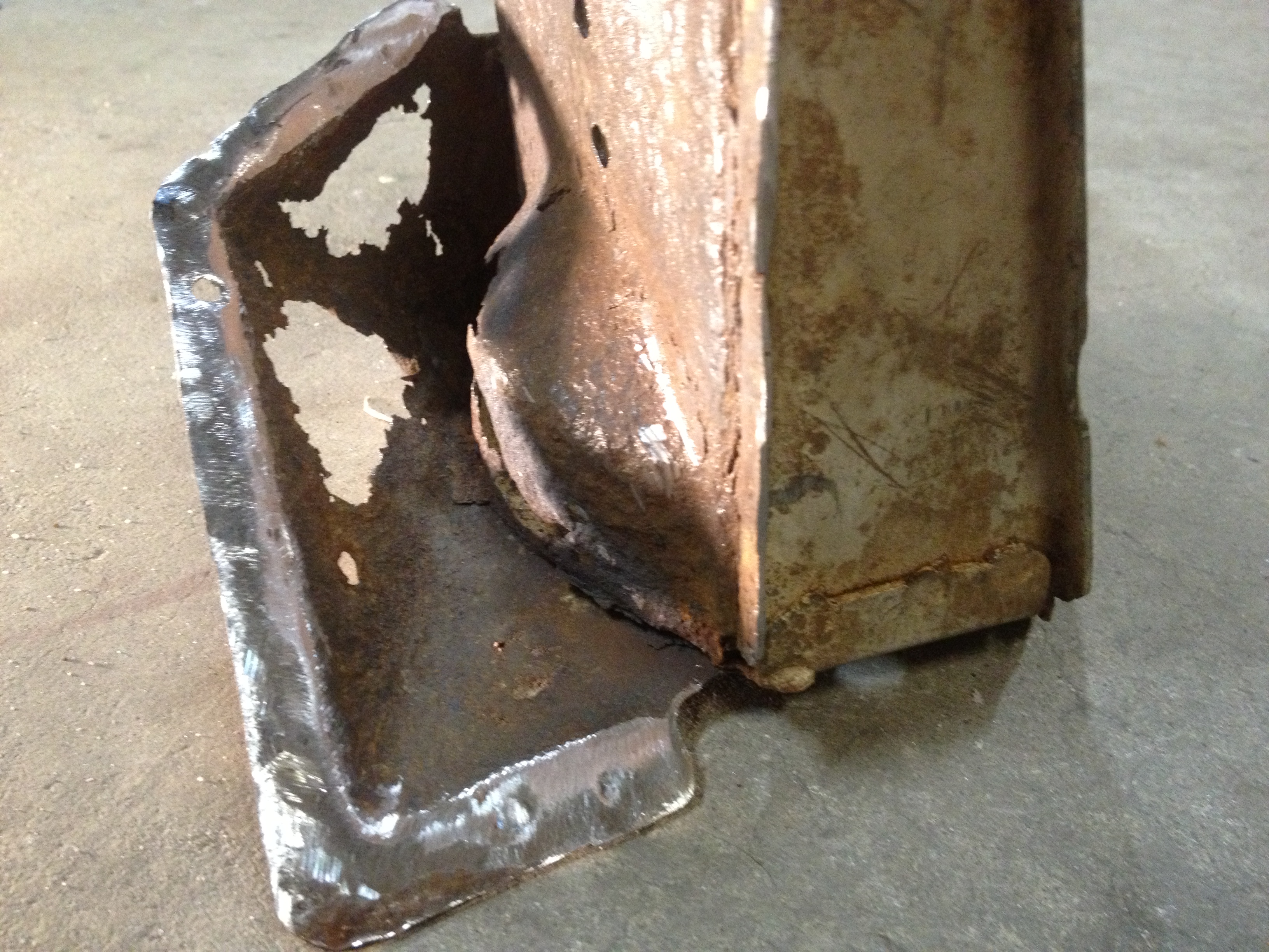 ![]() Don't forget the tunnel area. It often get's overlooked. Pinholes on the outside underbody are usually a sign of much worse rust penetrating from the inside out. Suspension consoles. Passenger side is usually the 1st to go. ![]() In this case my driver side has some stress cracking that also leads to rust on the consoles flanges that pick up the semi-trailing arm. ![]() Can't seem to lay my hands on it quickly but have pics of rust at base of rear bulkhead that penetrate both inner and outer sheetmetal if no one else posts them. |