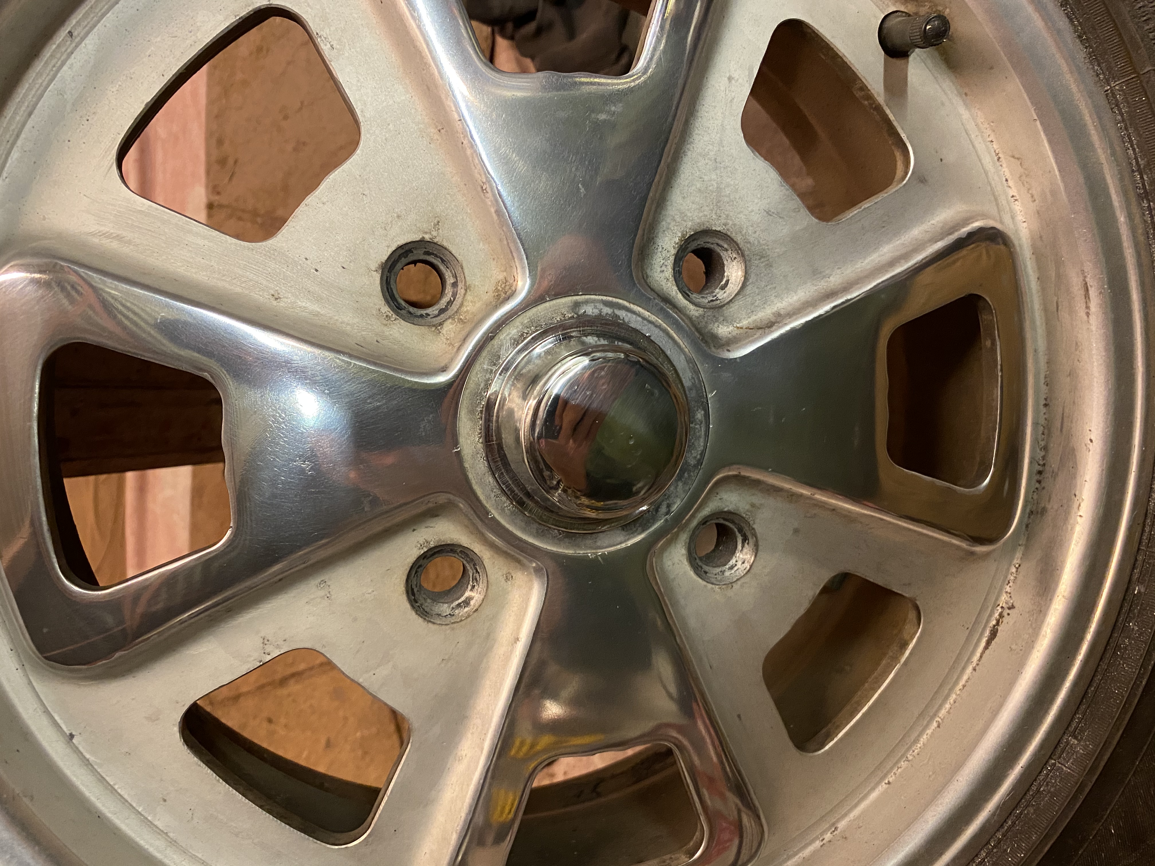 I used a 200 grit sanding pad on a 3" airsander to remove the anodising and the scuff marks etc... then went upto 600 then 1000 then 2000 then polished with a mopping pad and autosol metal polish I had to planish the centre cap to get it reasonably flat first as it was pretty beat up ten sanded it flat before polishing When you polish they will be more shinny. I stock the polished and the anodized. Polishing and making look good take a lot of time. That and dis-similar metals will continue to corrode the OEM caps making them hard to remove https://900designs-container.zoeysite.com/s...h/?q=center+cap Make sure to look at the set of 4 as it's cheaper than individuals Attached thumbnail(s) |