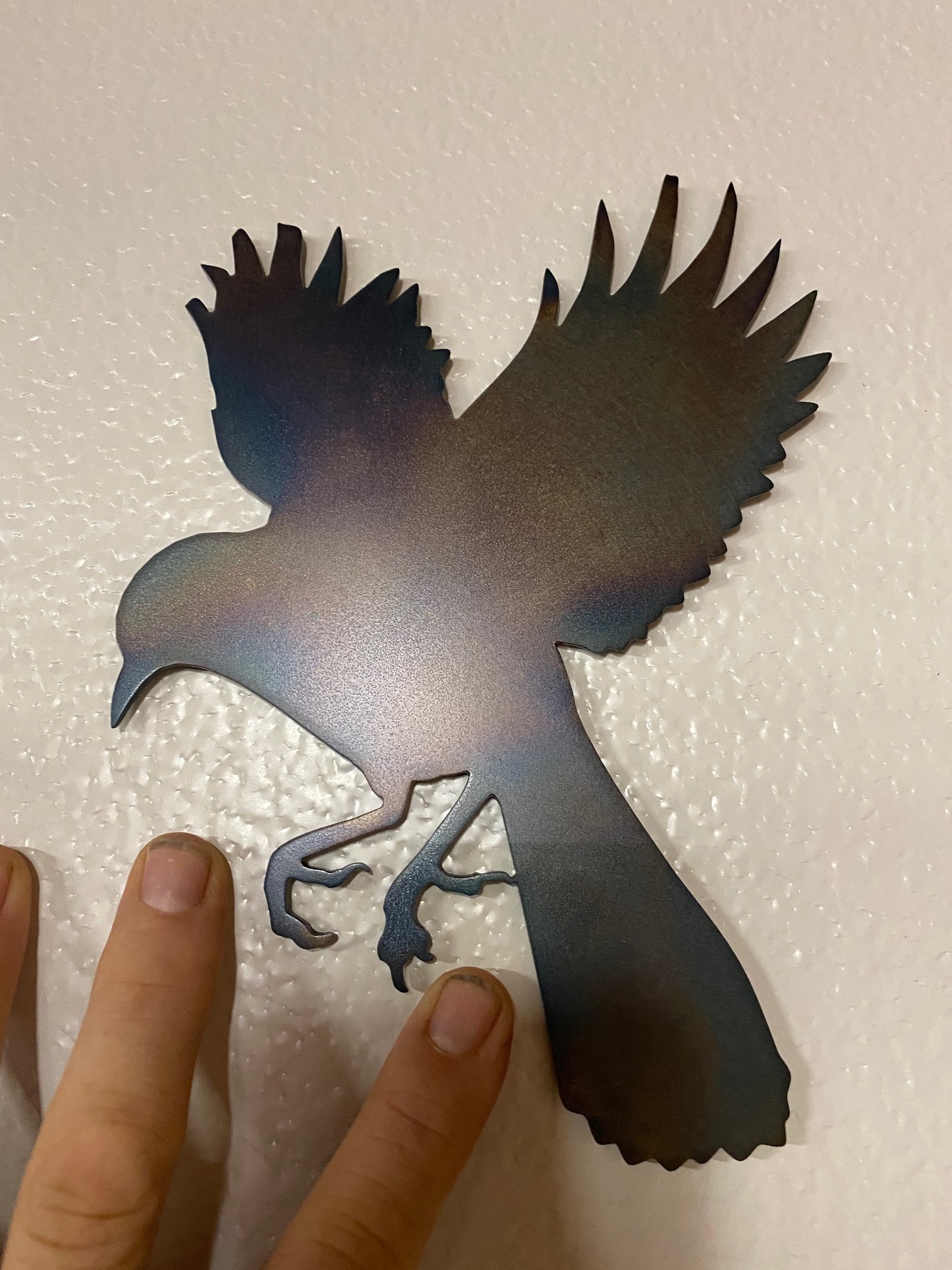 I can get these cut for you with out the slag associated with plasma, tighter tolerances These aren't mechanical parts and if the plamsa cutting is done well, you get not only pretty good precision in terms of measurement but also very little to no slag anywhere. The original brackets IMO are pretty sloppy in spec, but they could be, because they were only there to mount lights and not really serve a mechanical purpose. Responded to PM (IMG:style_emoticons/default/beerchug.gif) Example of plamsa cut, this came off the table like this, I just torch blued it to make it look more interesting, note the detail etc, plenty good for doing light brackets and then some: |