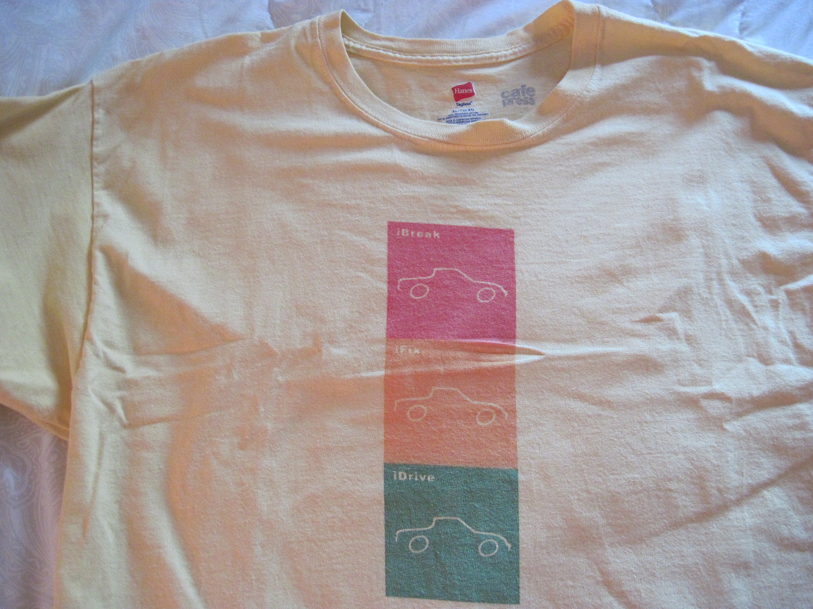 Here are mine - one sweatshirt and one T ("iBreak, iFix, iDrive"; pretty accurate..)
