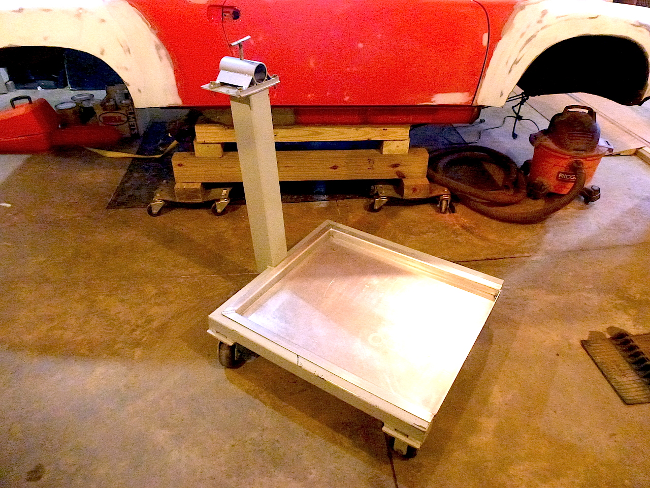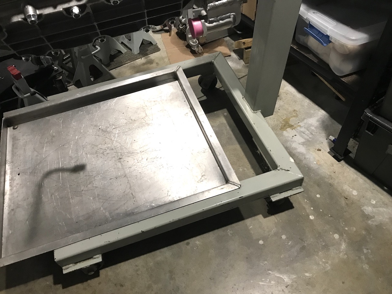 That custom made stand is pretty slick, and the drip tray is a very nice feature. But I like what Mark said about his allowing the hydraulic cart to fit inside the stand feet. I've got the cheap HF model. I like it. I like my hydraulic cart. What I don't like is the gymnastics I have to go to so I can marry up the engine on cart with the engine stand.