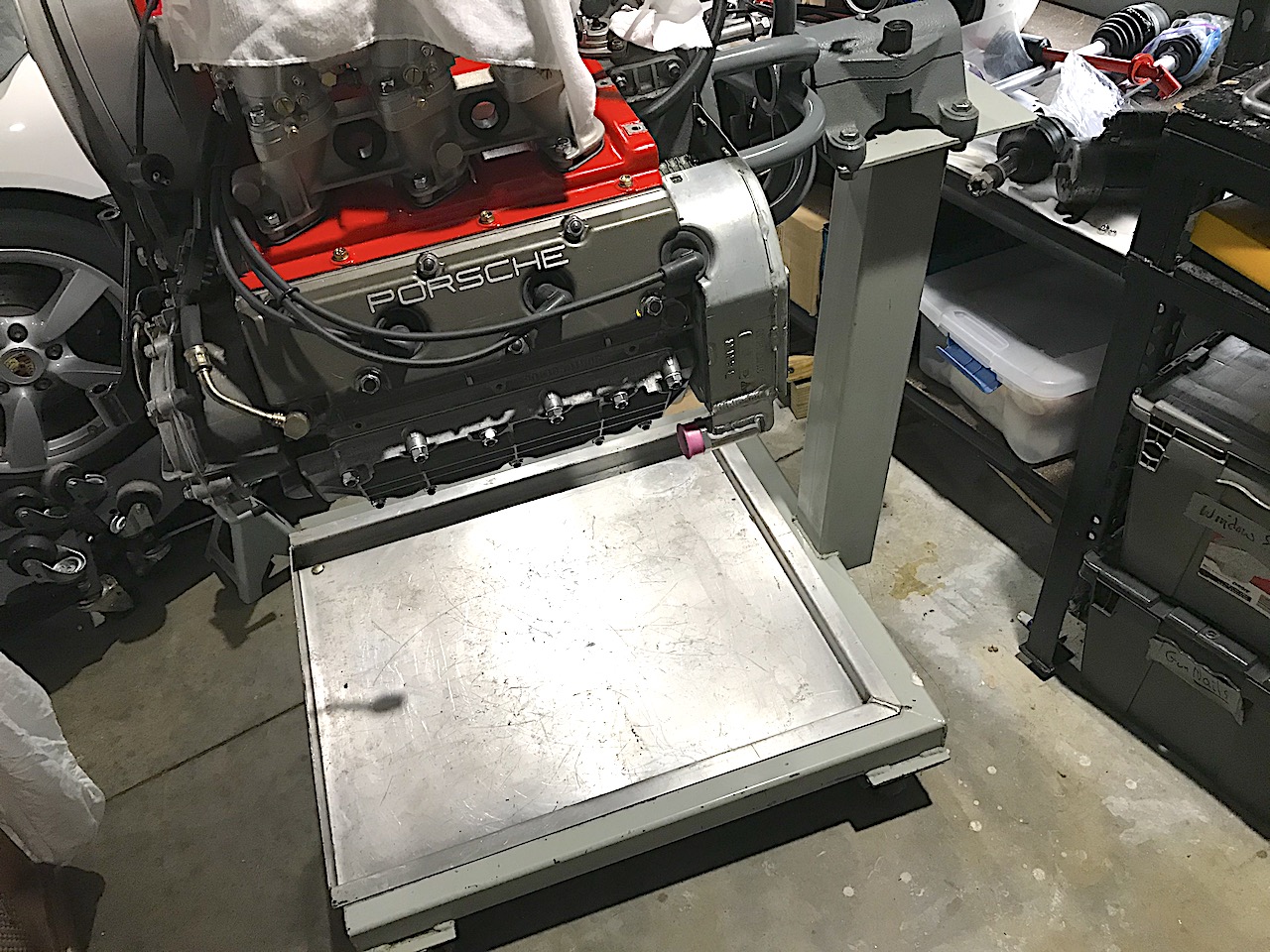 All but one of my adapters are shop built. I have a couple of the HF cheap 600lb stands but I only use them for T1 and T4. I almost tipped over a /6 on one of these stands. I have a repro P201 I think made by SIR and I use the Princess Auto 2000lbs folding legs 6 wheel stand, harbor freight likely sells the same stand. I have two of these stands. Only issue is the engine half doesn't sit level, it sits nose high, so I ended up cutting and bending the stands main tube just below the receiver. (IMG:style_emoticons/default/welder.gif) Folds for storage and my 660lb lift table cart fit's between the legs. I can fully kit out a 996 engine with exhaust, which is 500lbs and almost 6 foot wide and I can roll it around with ease. https://www.princessauto.com/en/detail/2-00...and/A-p8668030e I bought mine on sale for $135. |
