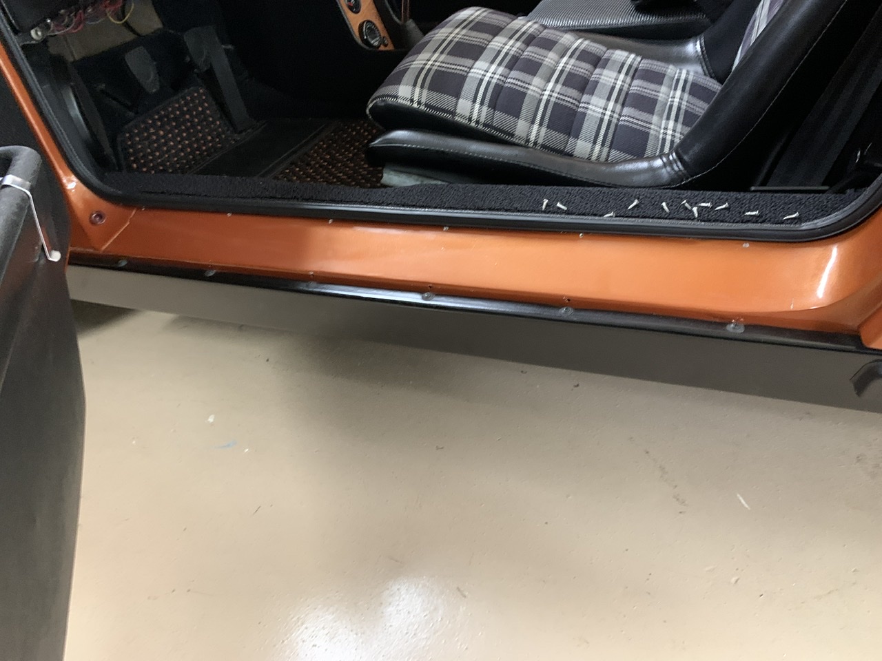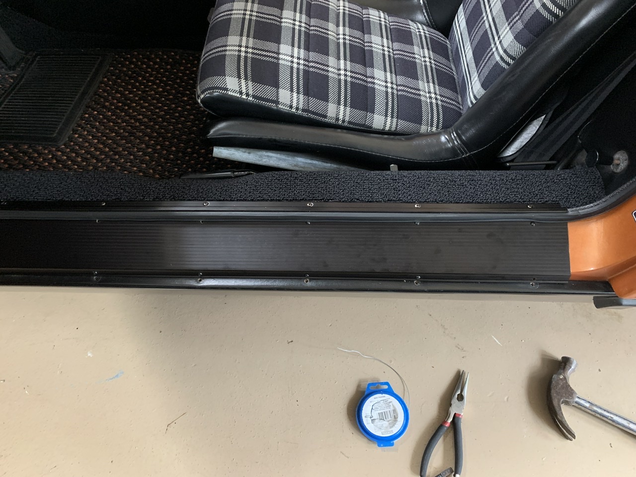 When I first bought my 2nd 914 a year ago one of the first things I did was to get rid of the plastic black carpet strips for metal ones, I think from Auto Atlanta, can't quite remember.