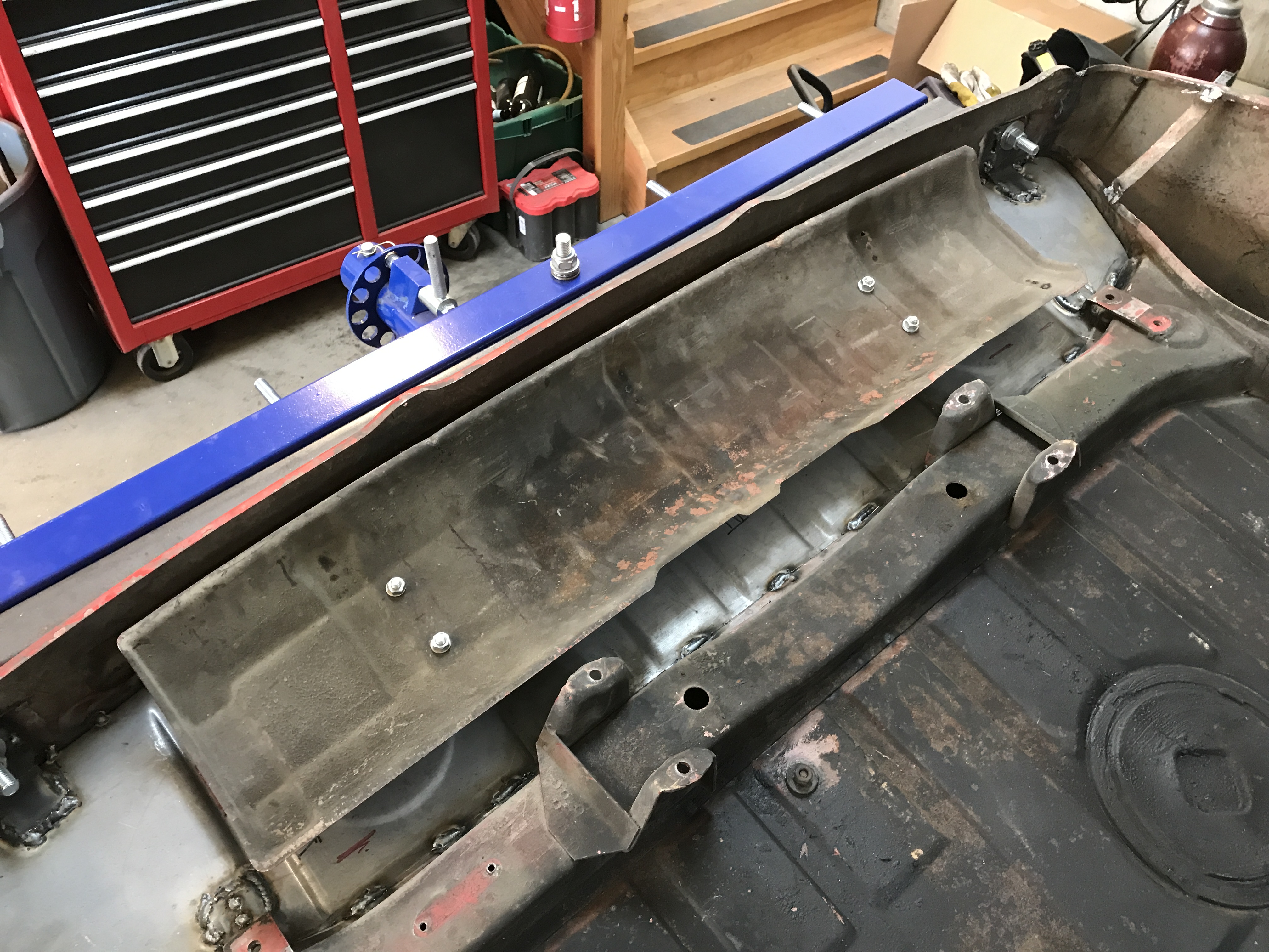 Would like to confirm if the the heat shield above the muffler is bolted into the cross section of the rear trunk from underneath or is it welded in place? Just learned I don't have one installed and its baking my new paint in the trunk from underneath. Have one sourced already and will also be going with heat insulation matting for extra protection. As we discussed only the early 1970 cars had them bolted on. I don't see how it can be rewelded with the limited access to the rear brackets on the shield |