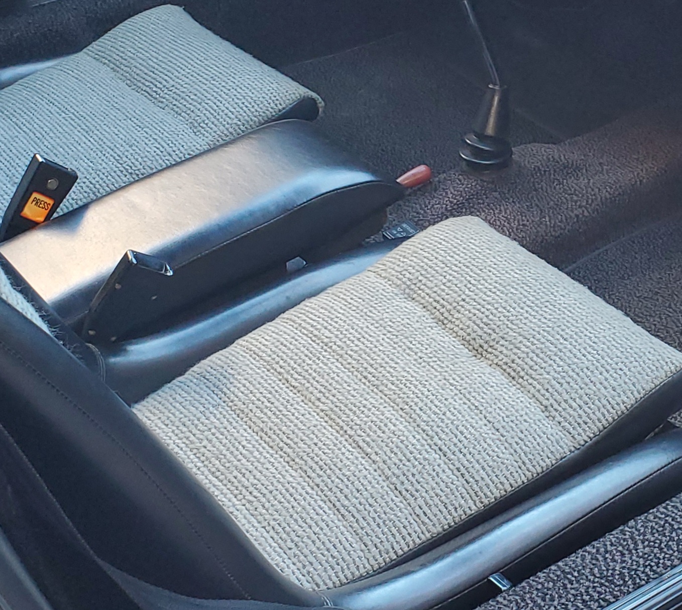 We do have the black corduroy that was mostly European delivery cars. Not a great picture, but period correct and correct for the cars.
